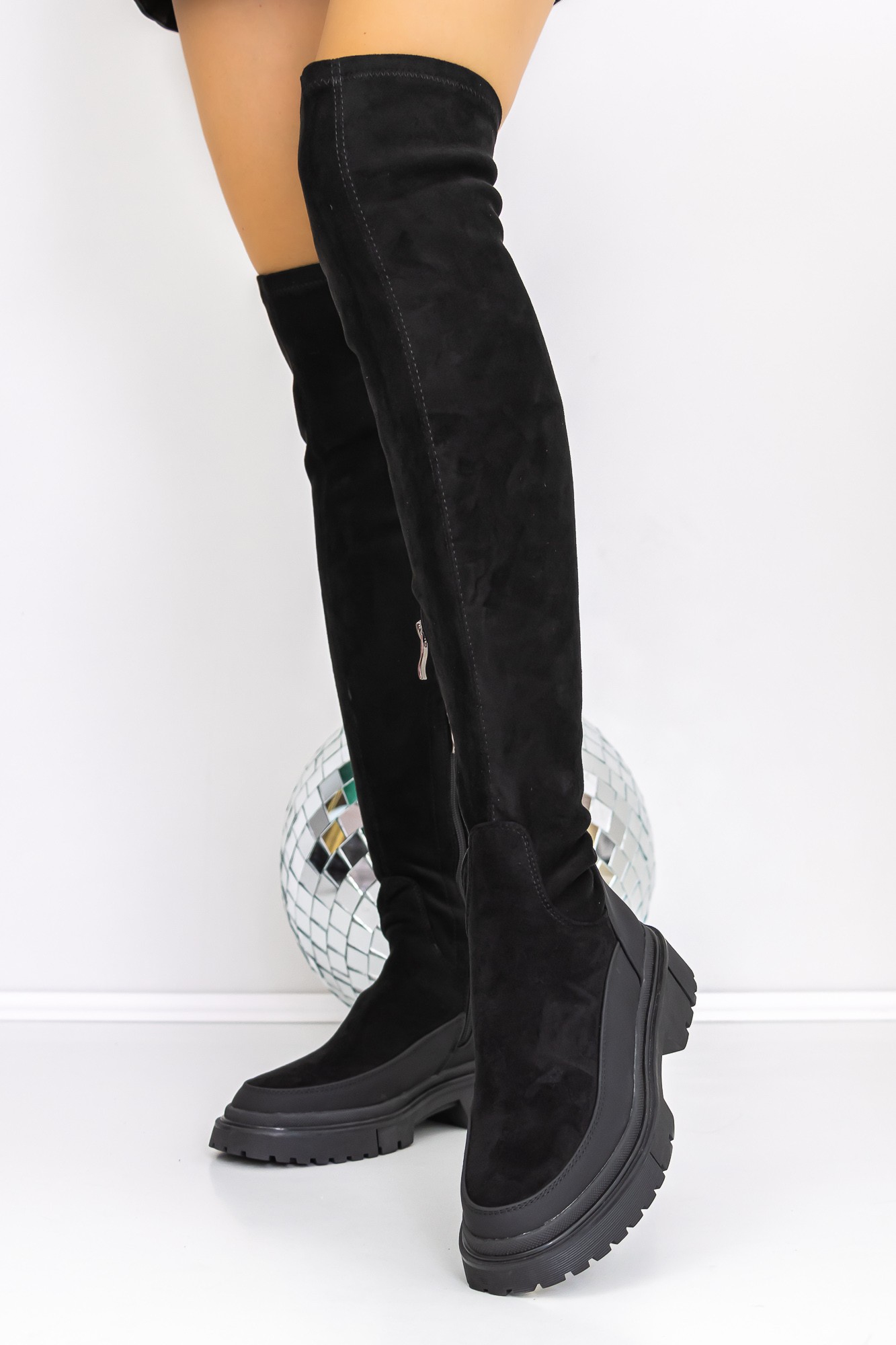 Cizme dama cu toc negre din material textil Olona - Alege ce ti se potriveste si remarca-te