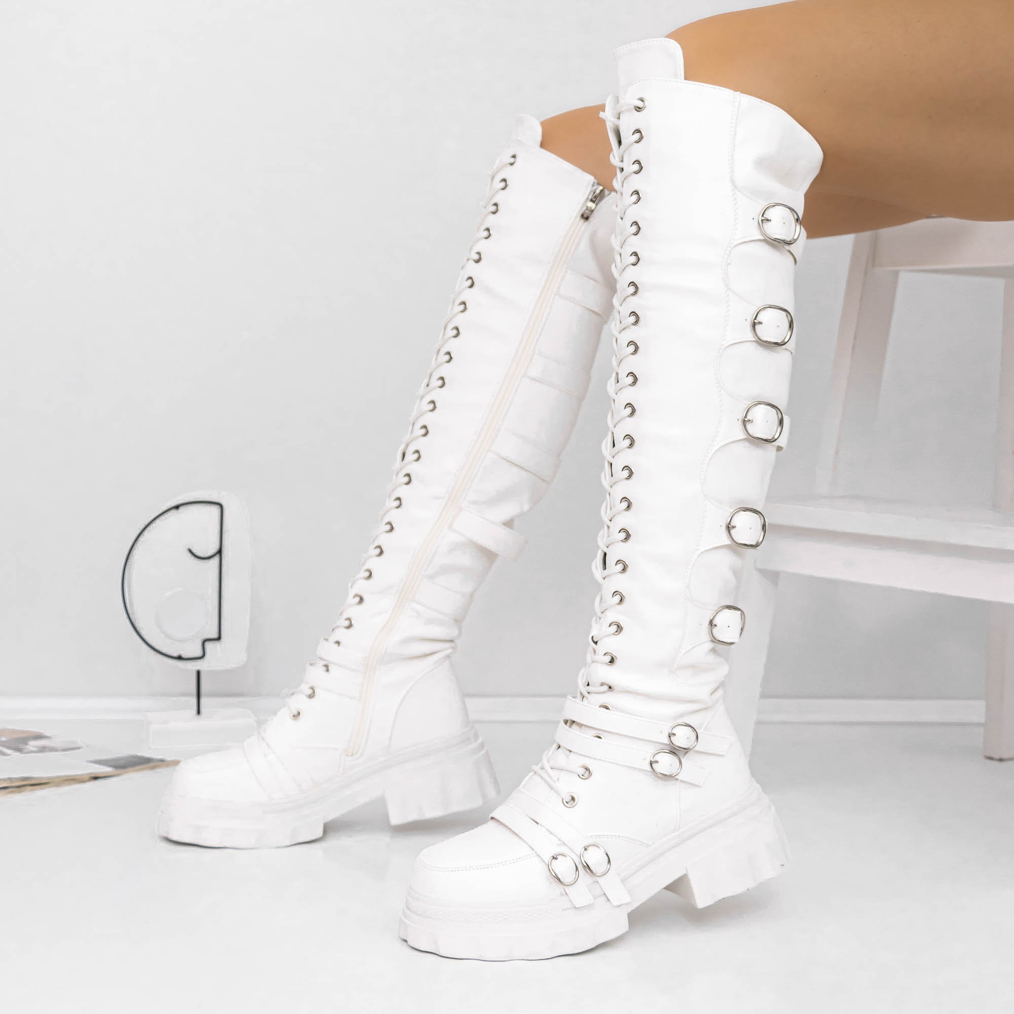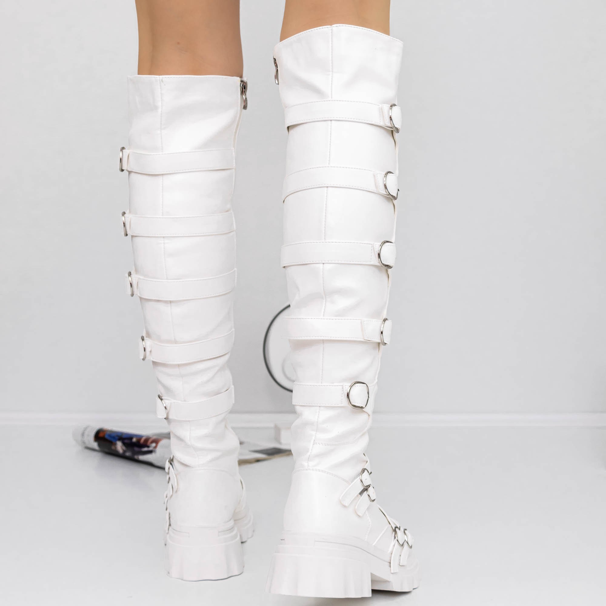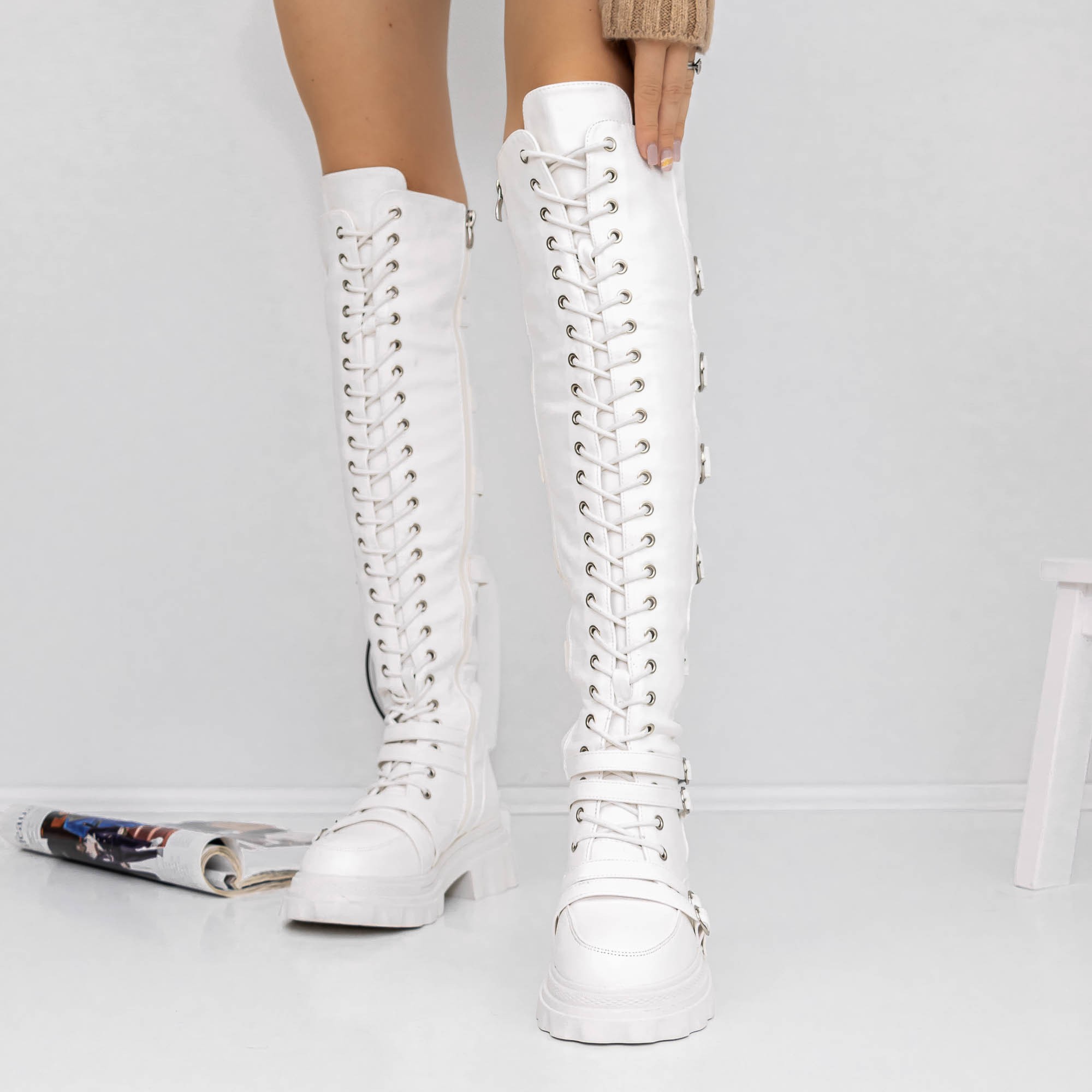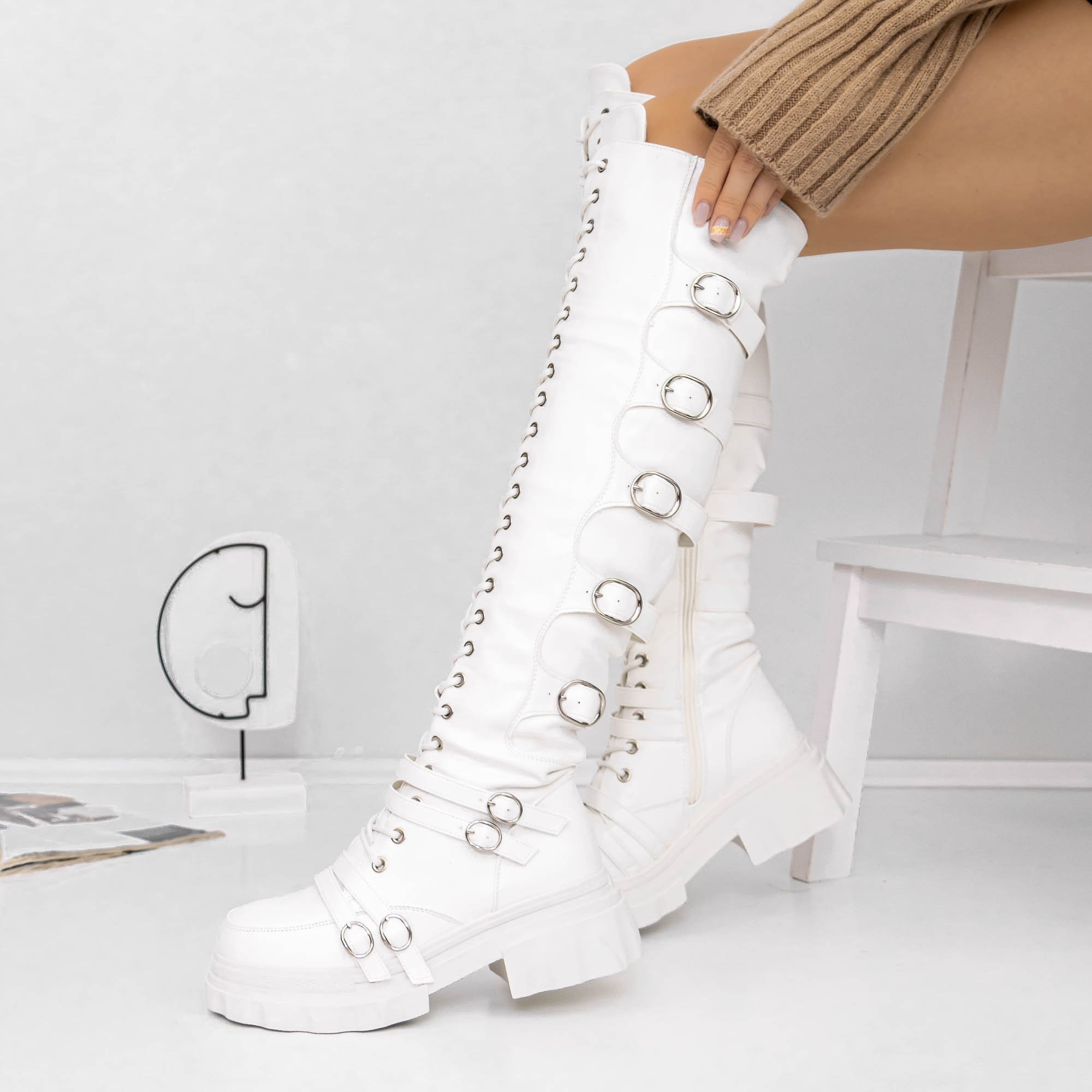 Cizme dama albe din piele ecologica Arosa - Detalii produs