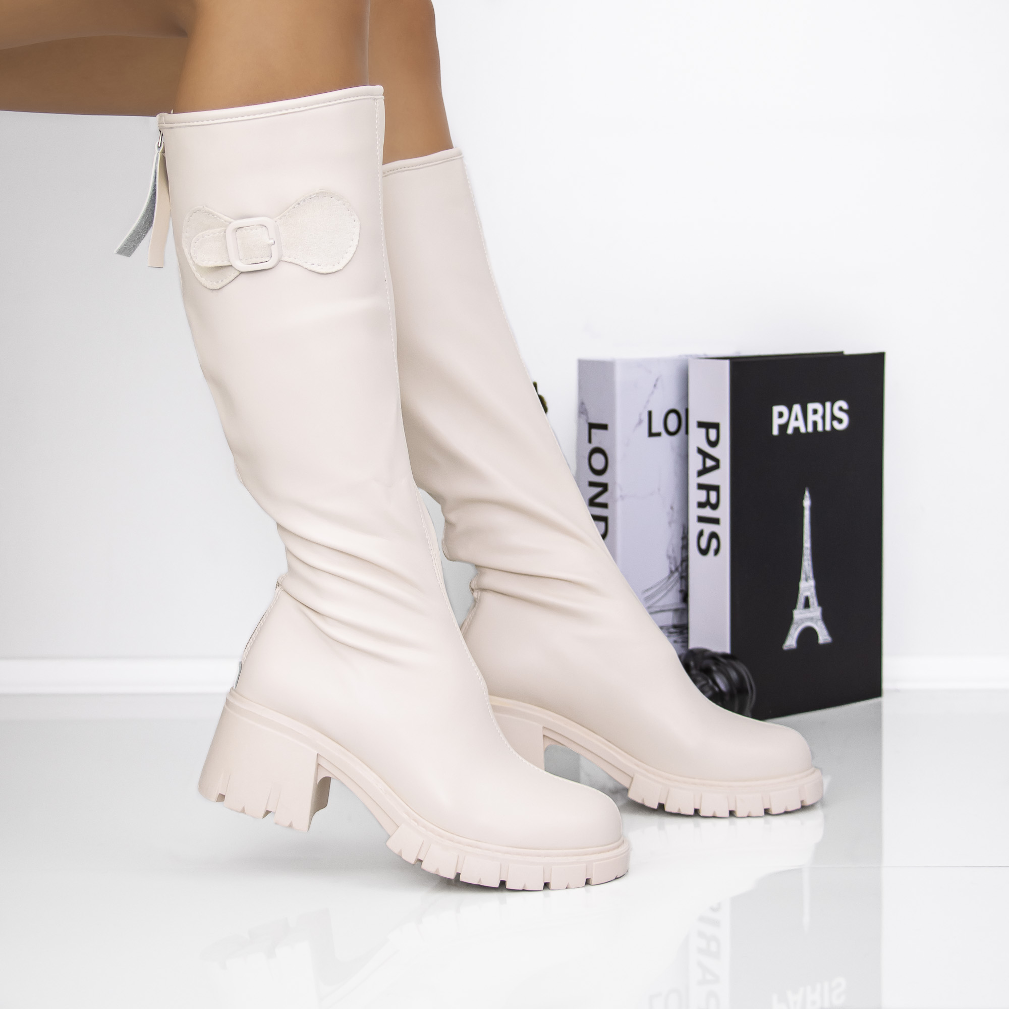 Cizme dama cu toc bej din piele ecologica Maysen - Alege ce ti se potriveste si remarca-te