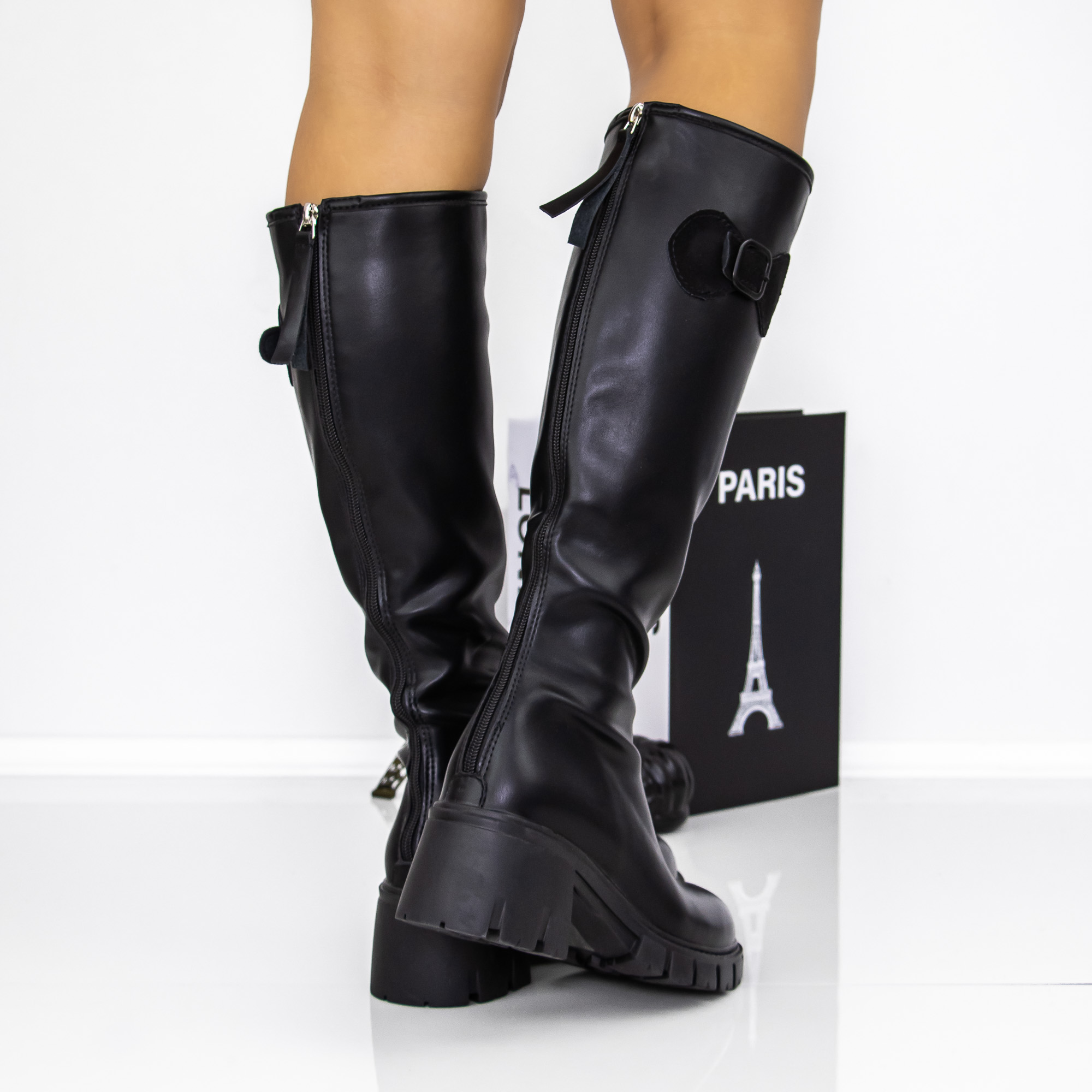 Cizme dama cu toc negre din piele ecologica Maysen - Detalii produs