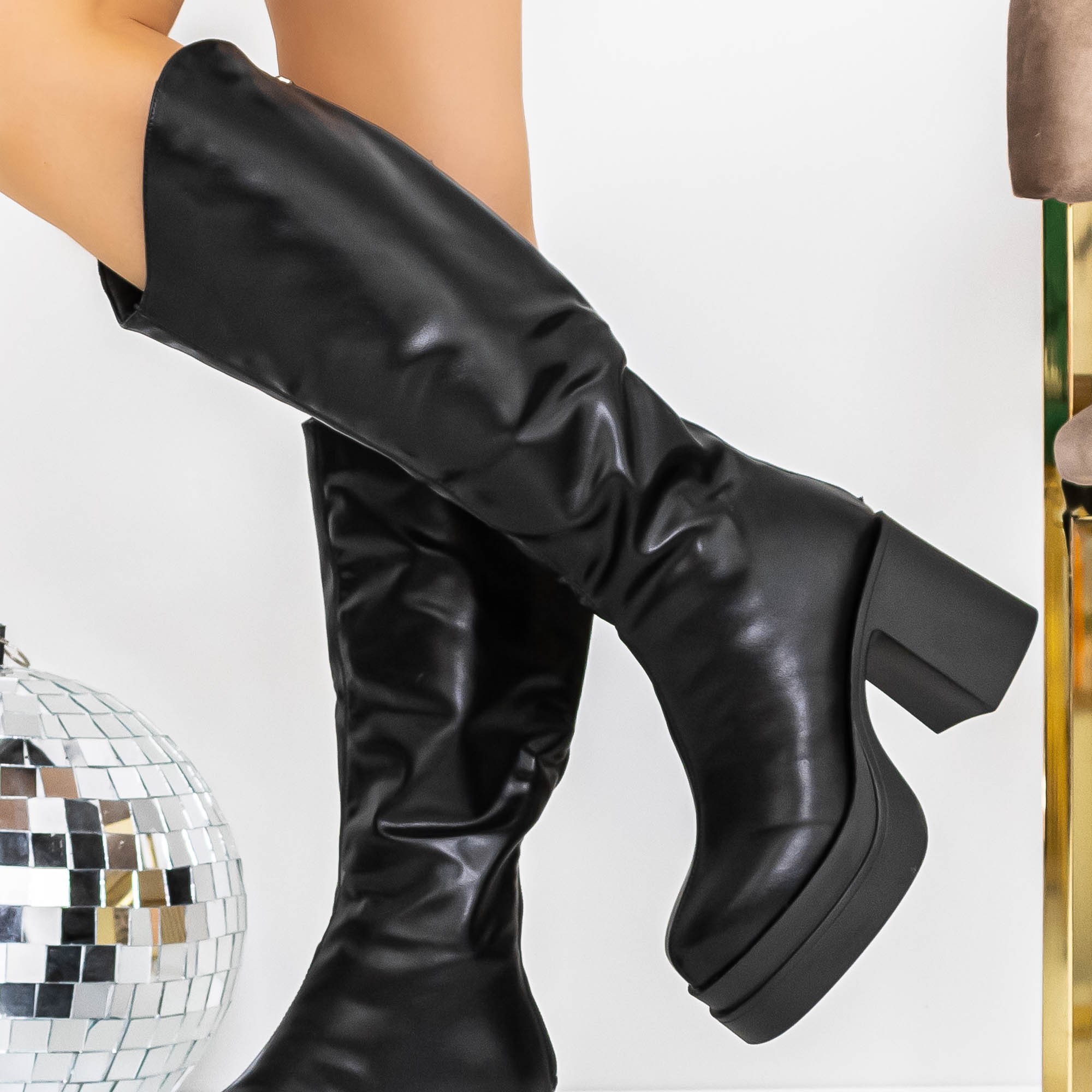Cizme dama cu toc negre din piele ecologica Izada - Detalii produs
