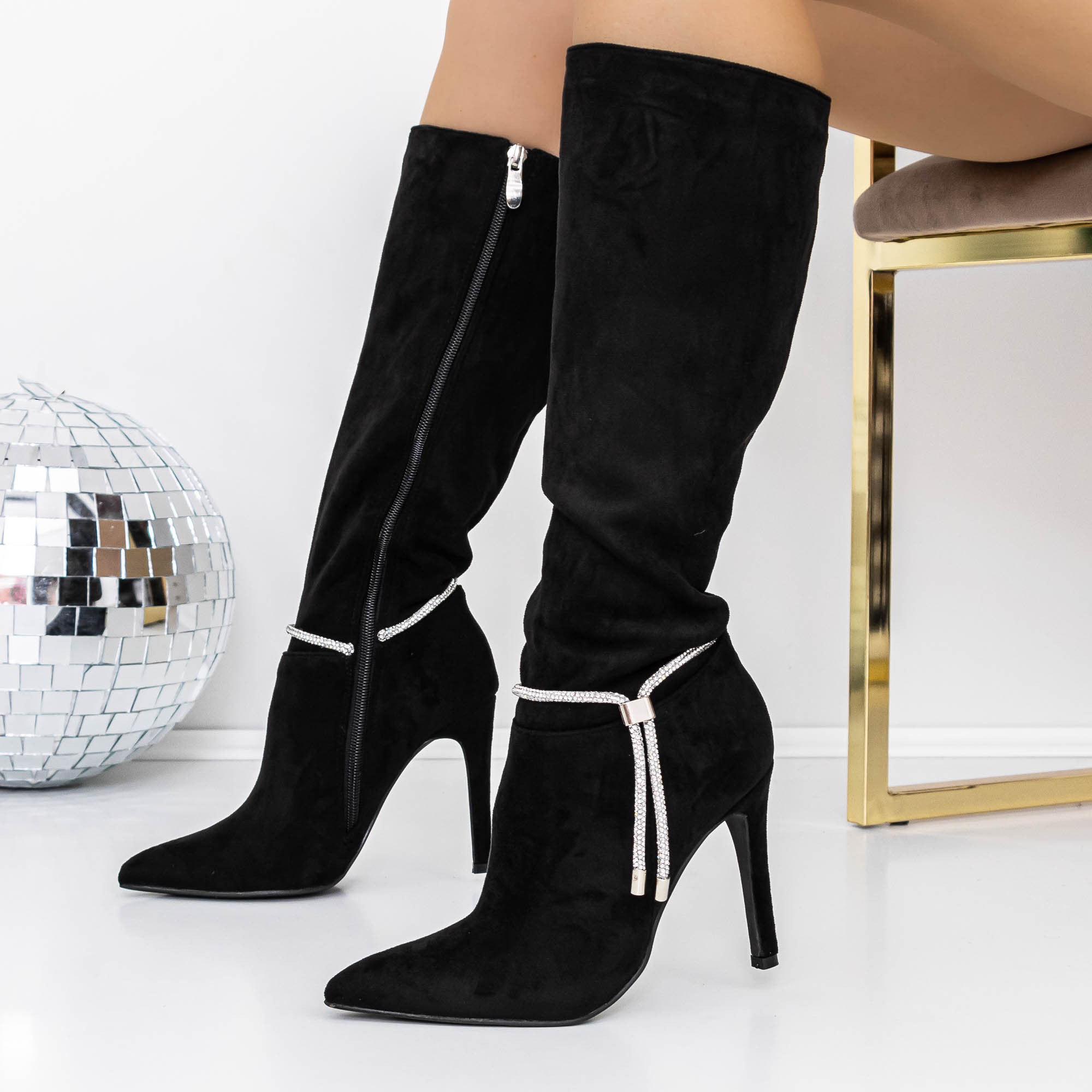 Cizme dama cu toc negre din material textil Esada - Alege ce ti se potriveste si remarca-te
