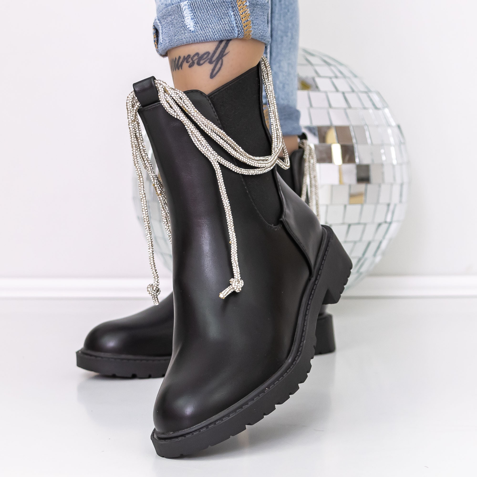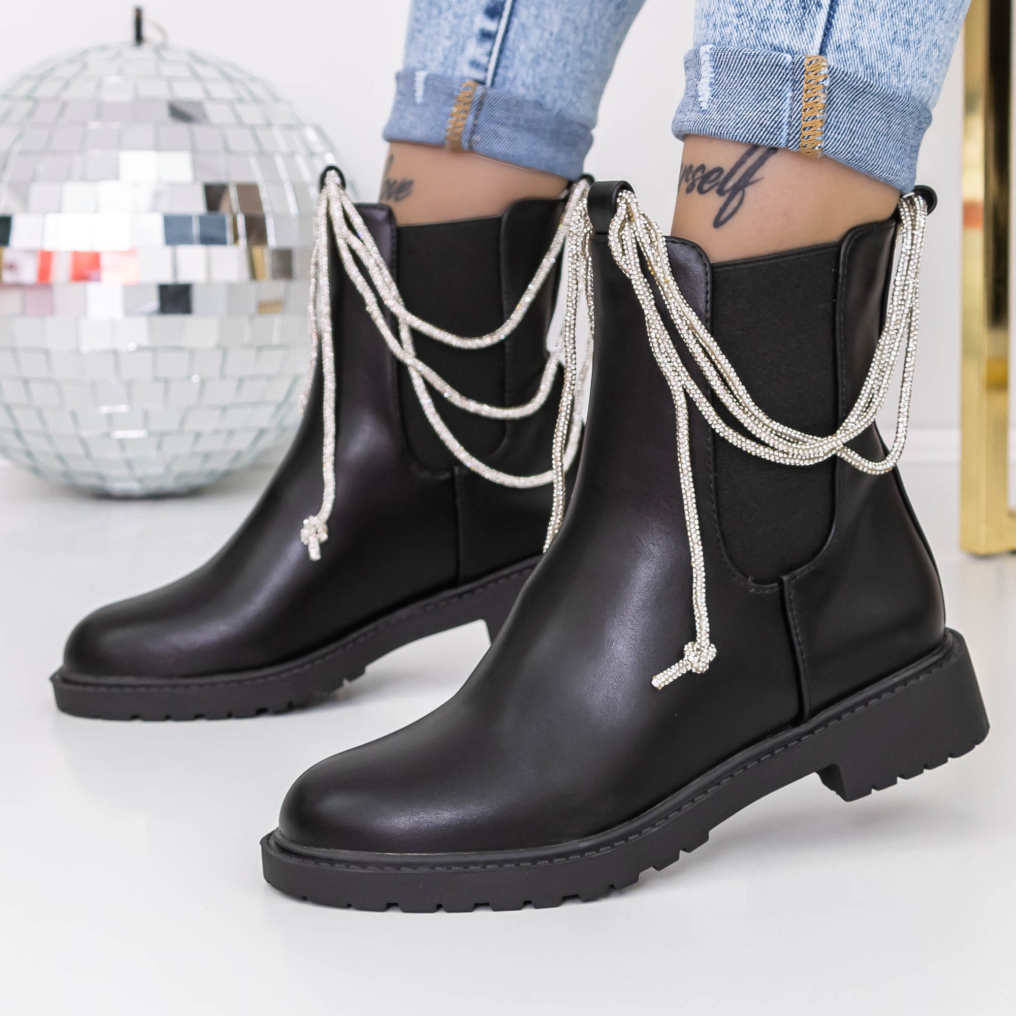 Ghete dama negre din piele ecologica Myada