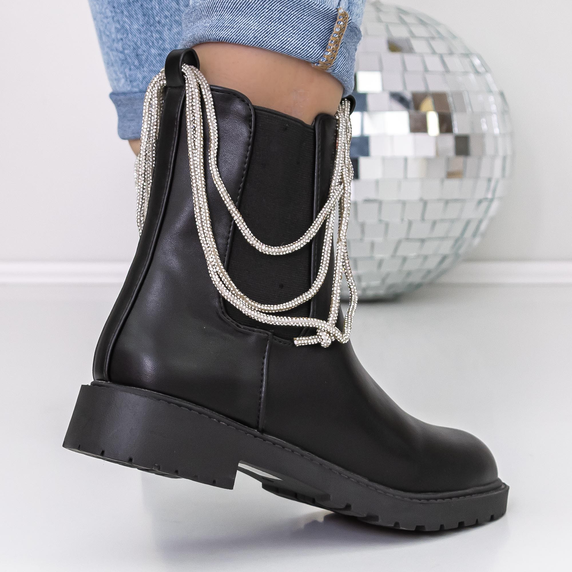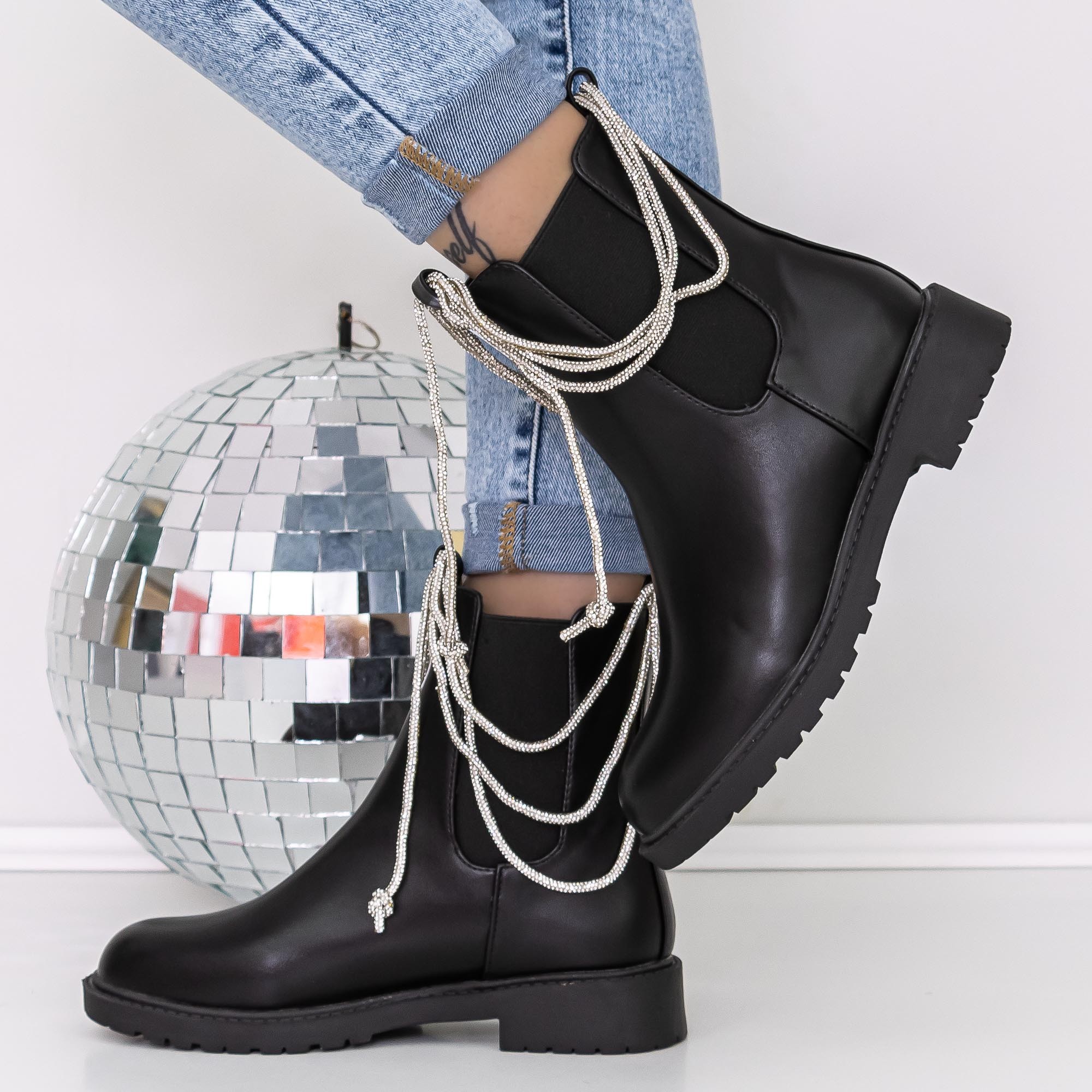 Ghete dama negre din piele ecologica Myada - Detalii produs