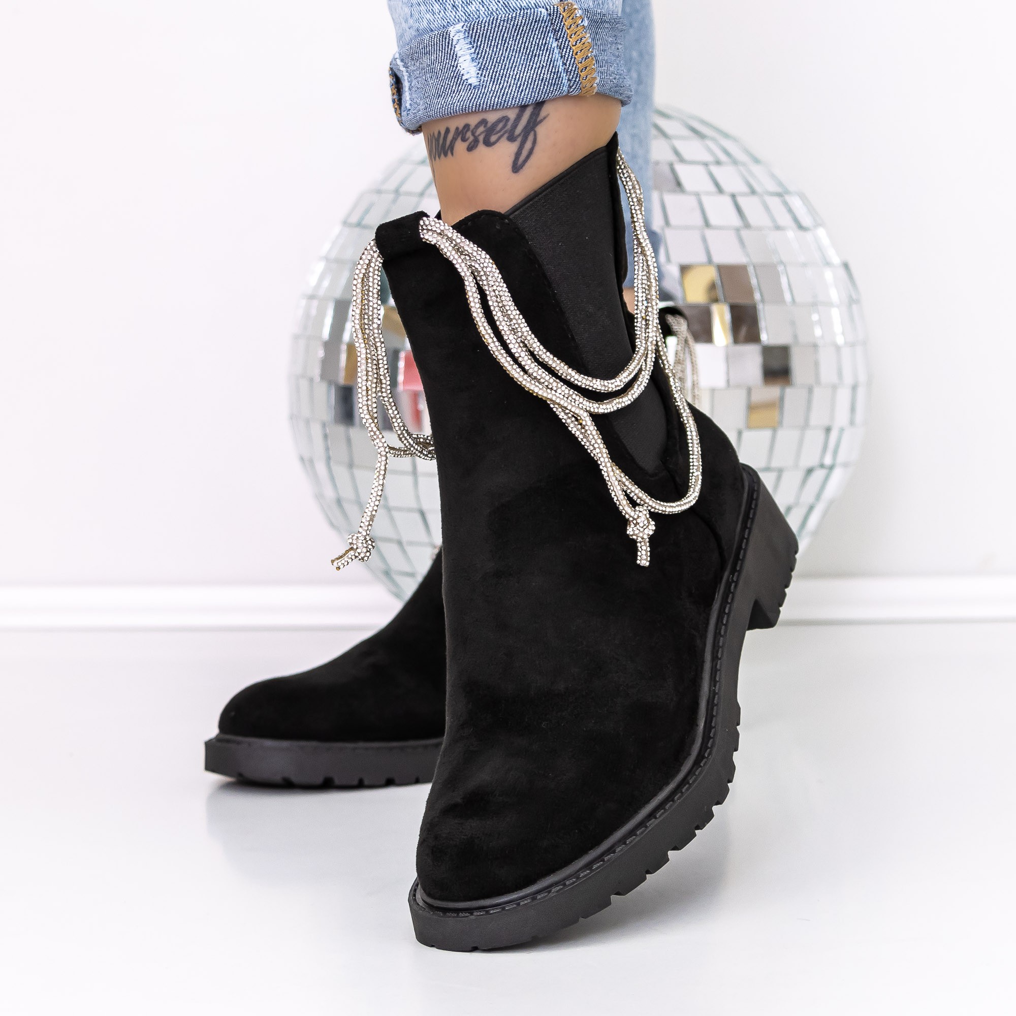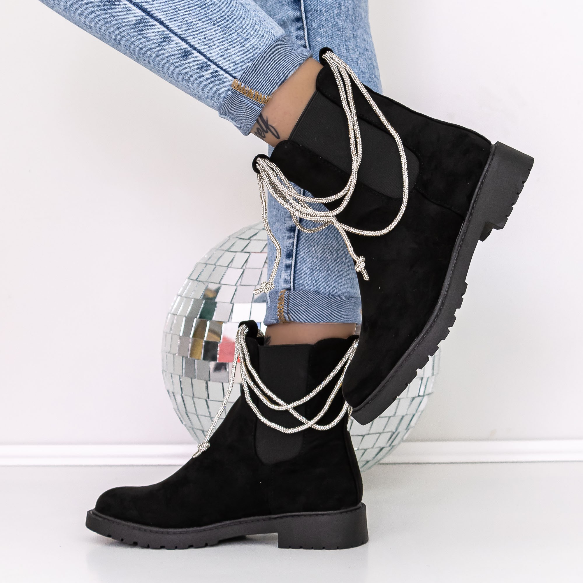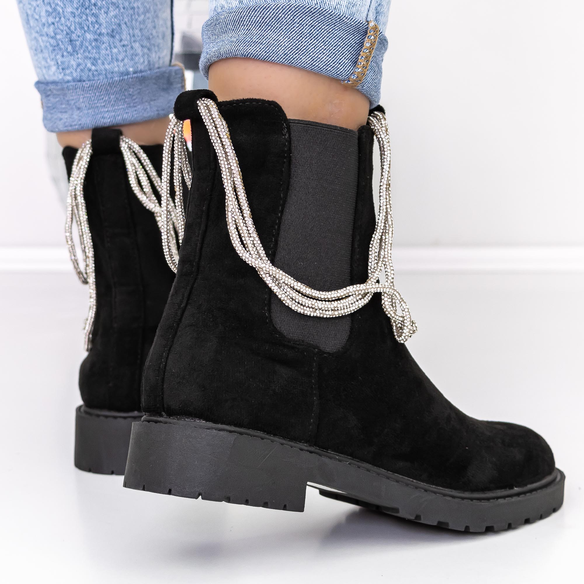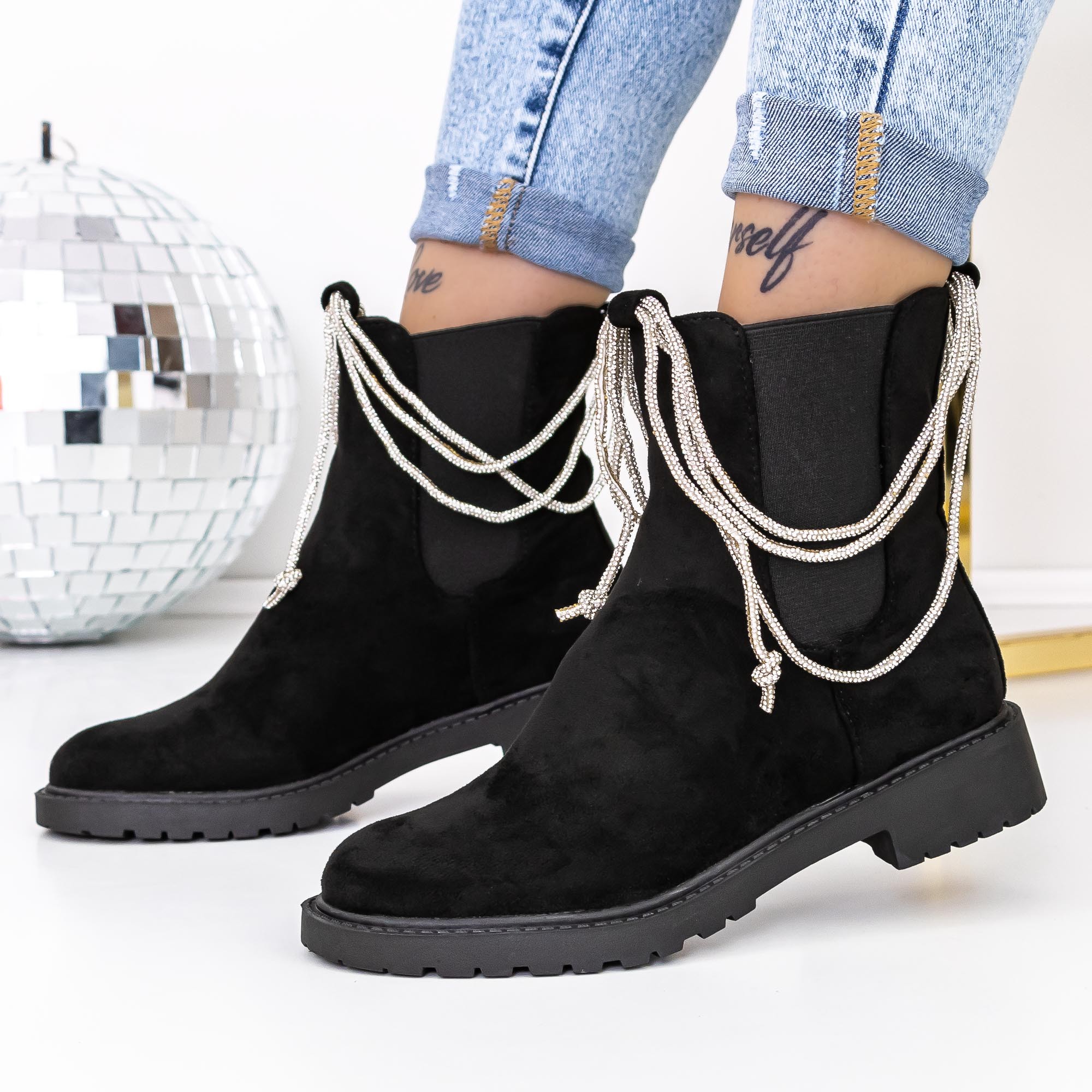 Ghete dama negre din material textil Myada - Detalii produs