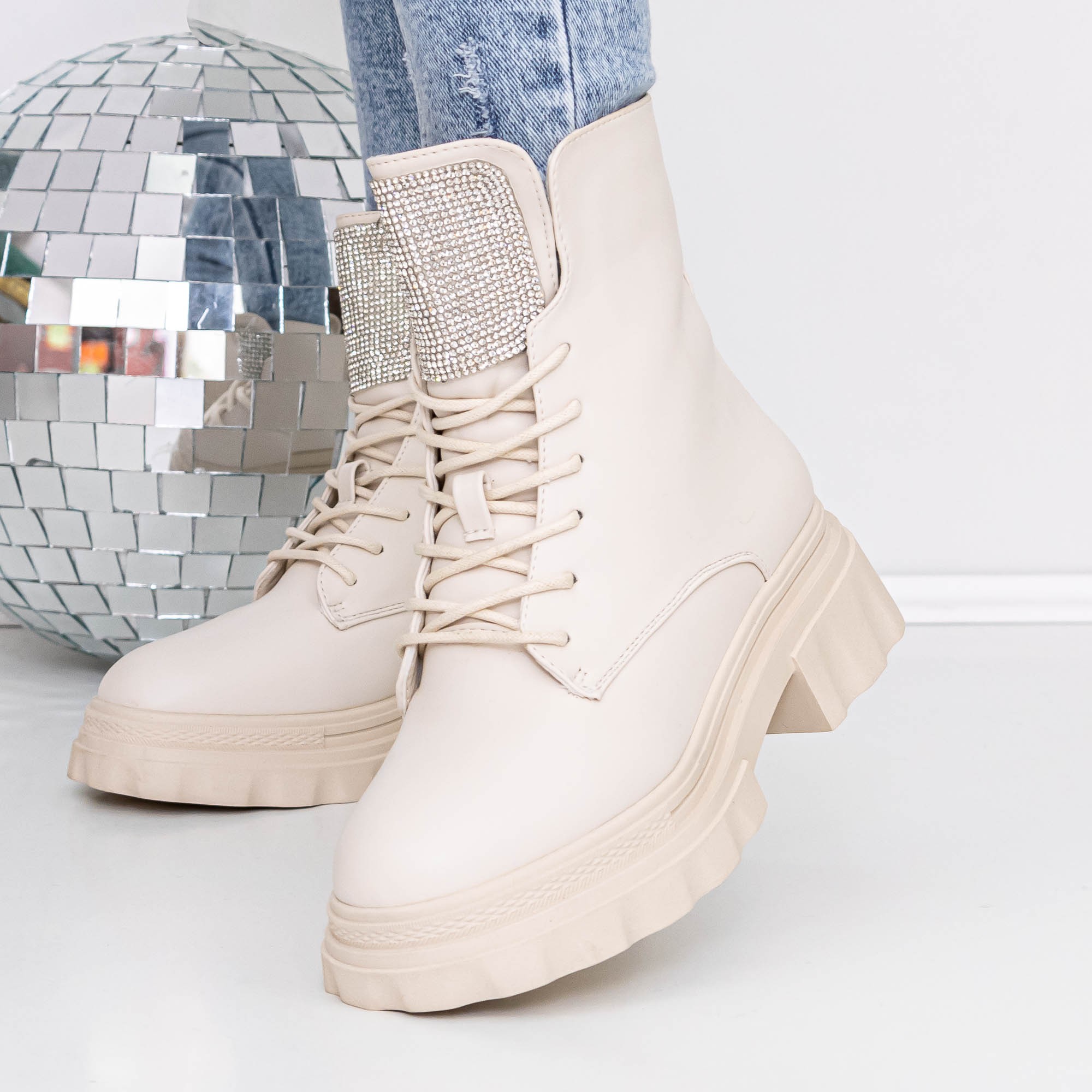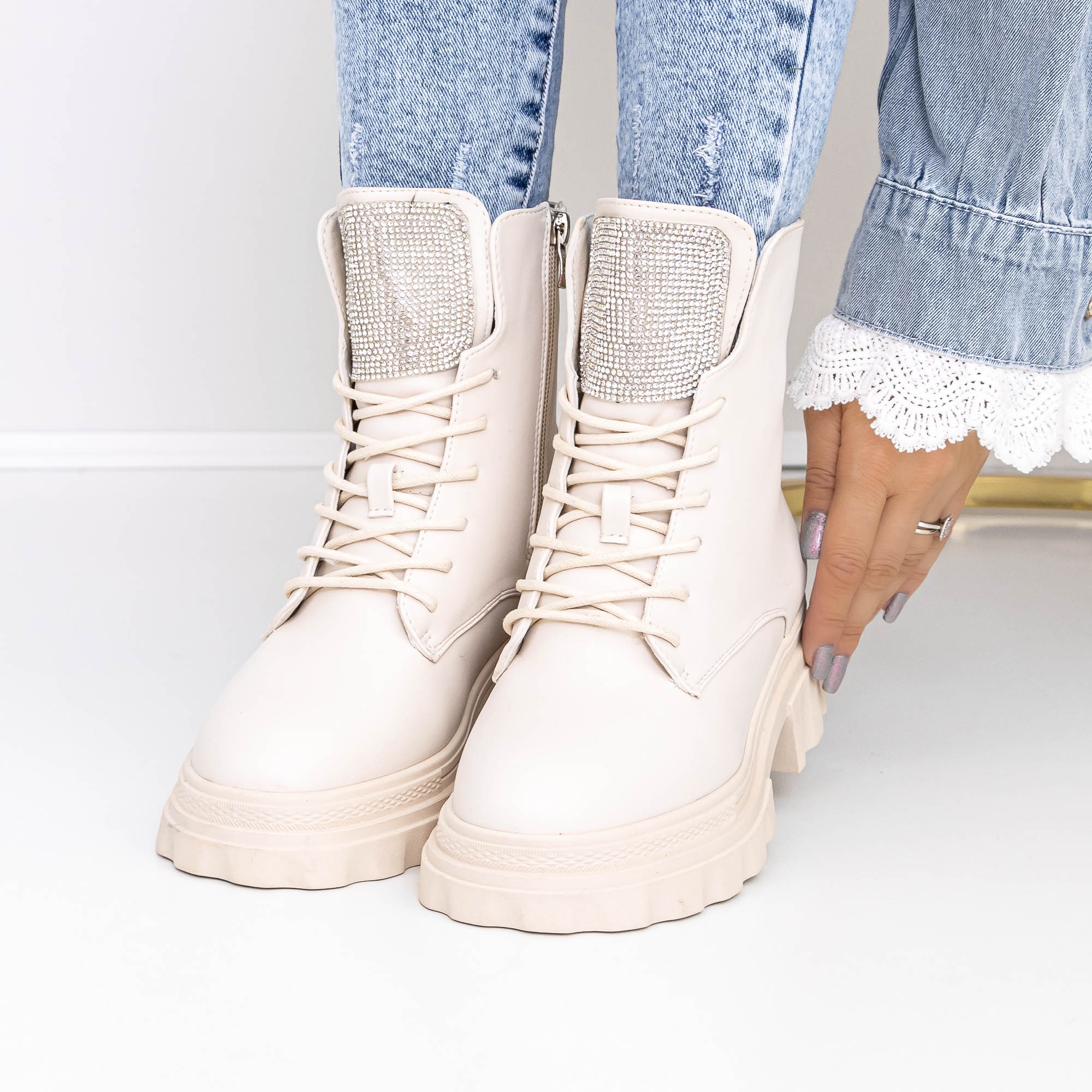 Ghete dama bej din piele ecologica Adeka - Alege ce ti se potriveste si remarca-te