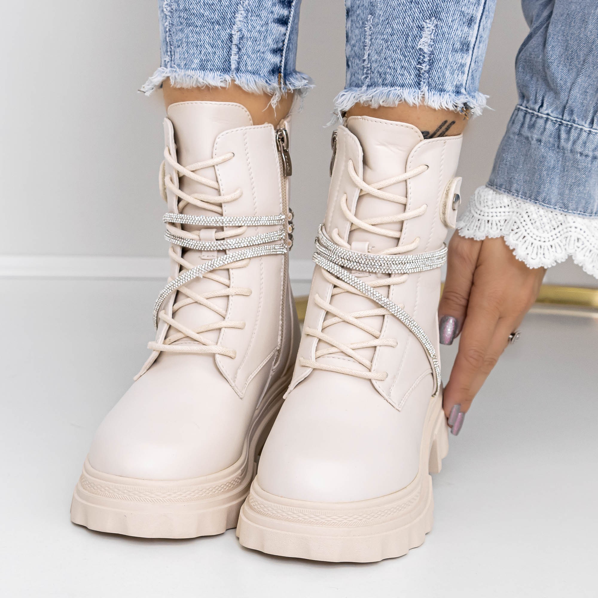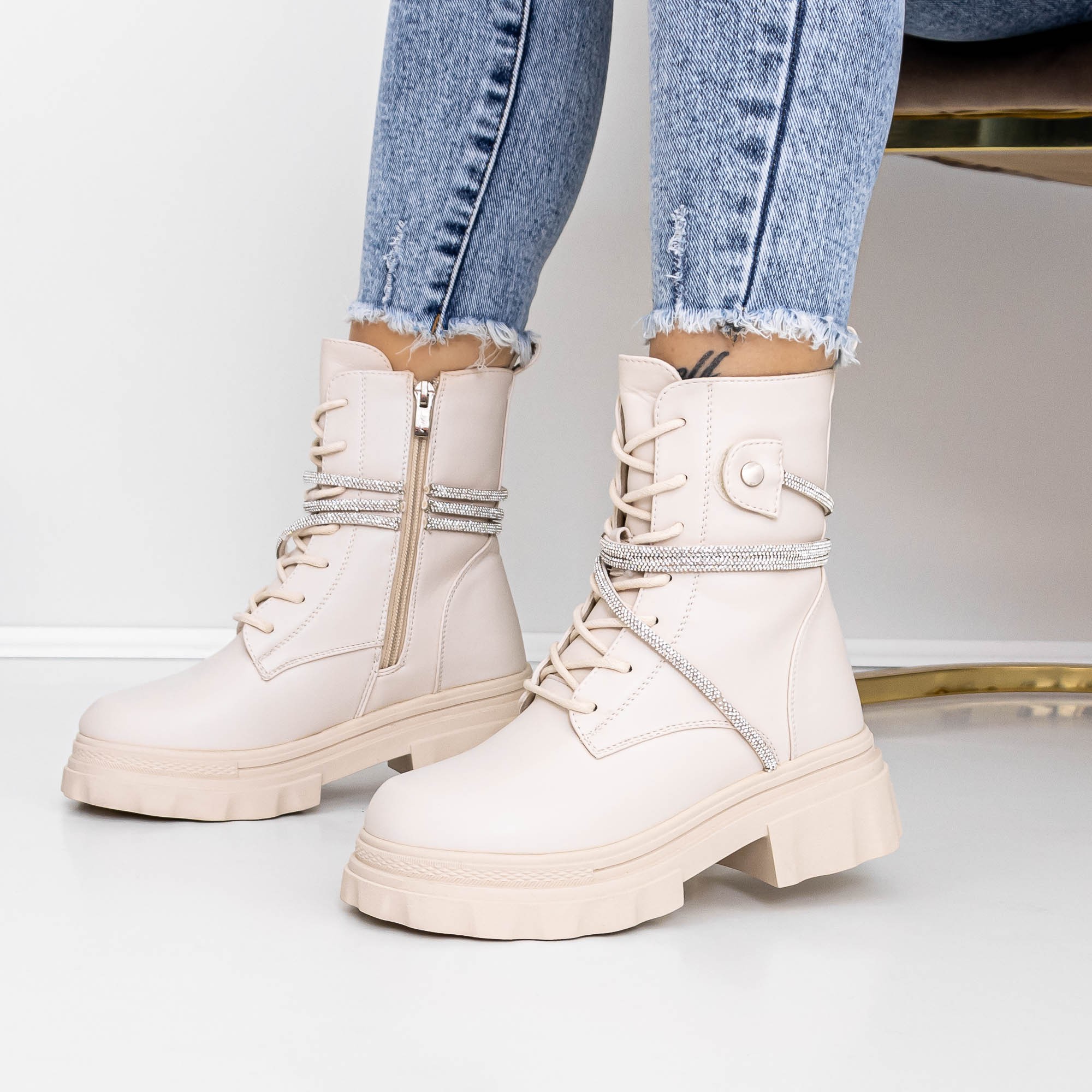 Ghete dama bej din piele ecologica Ecora - Alege ce ti se potriveste si remarca-te