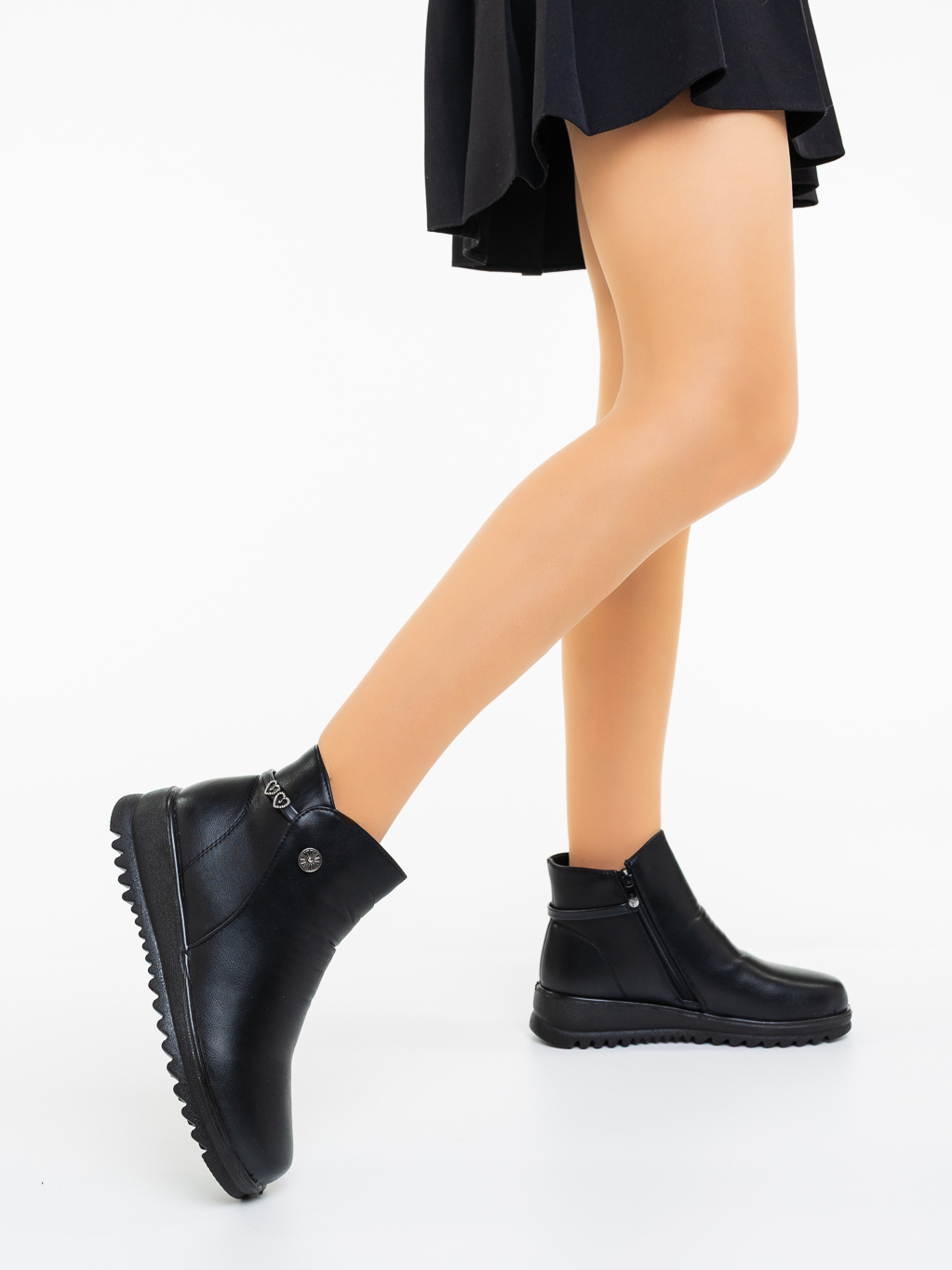 Ghete dama negre din piele ecologica Akshara - Detalii produs