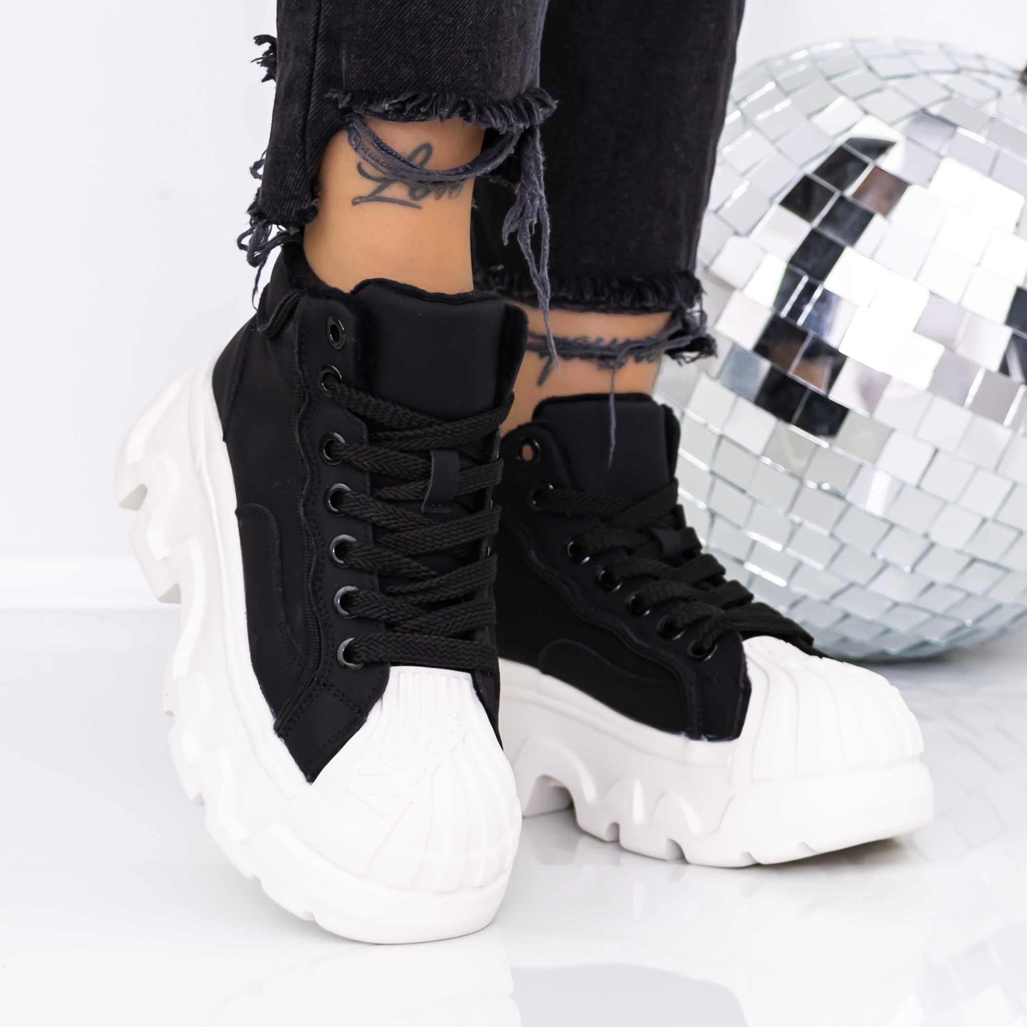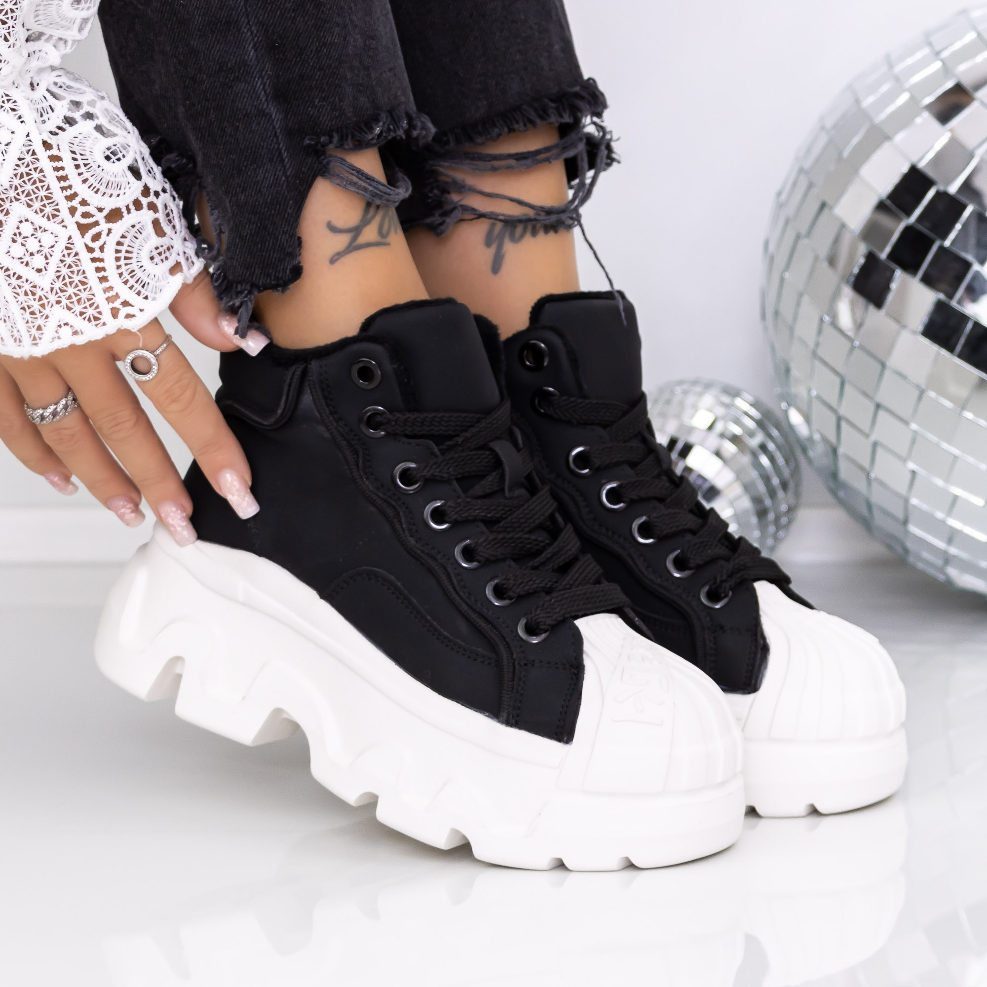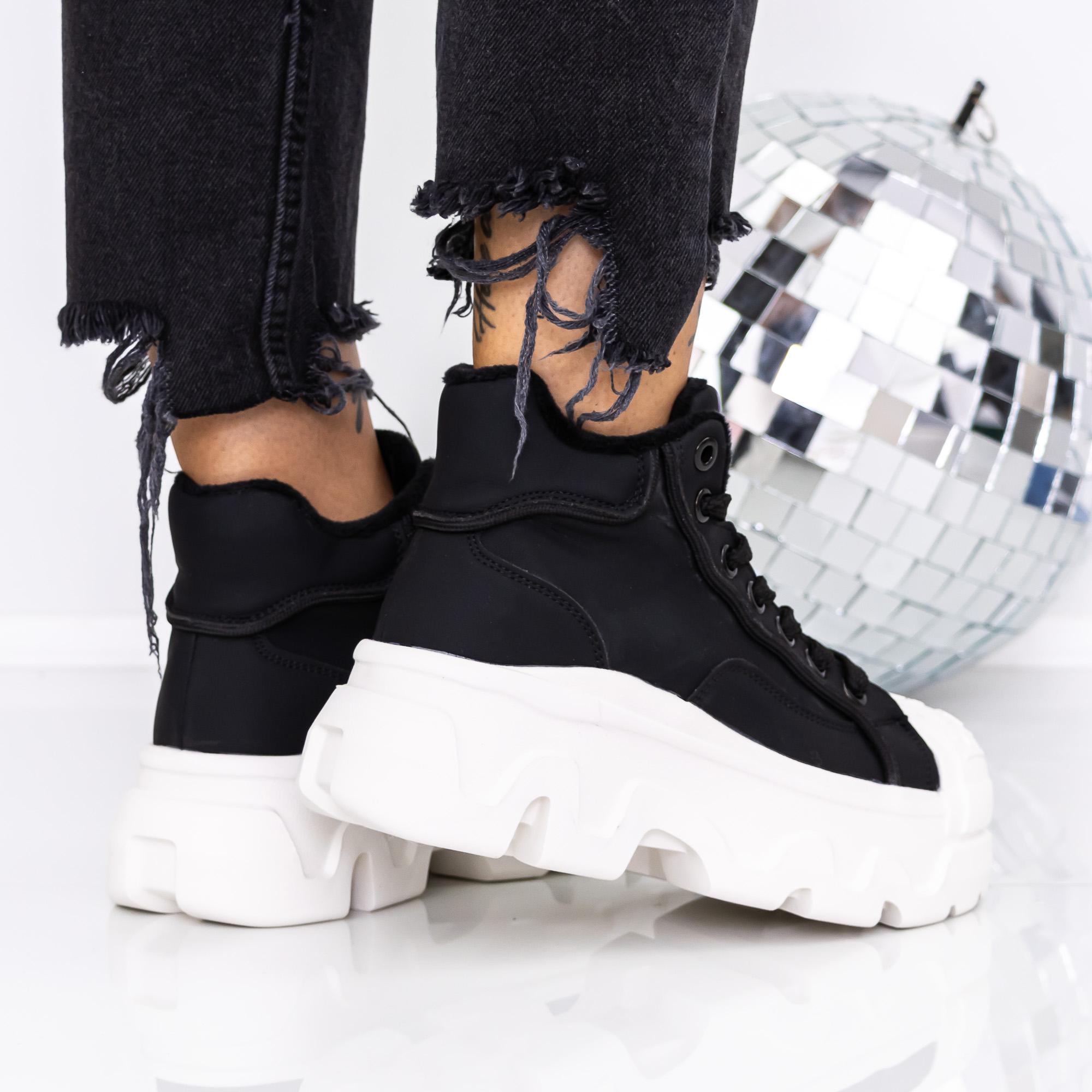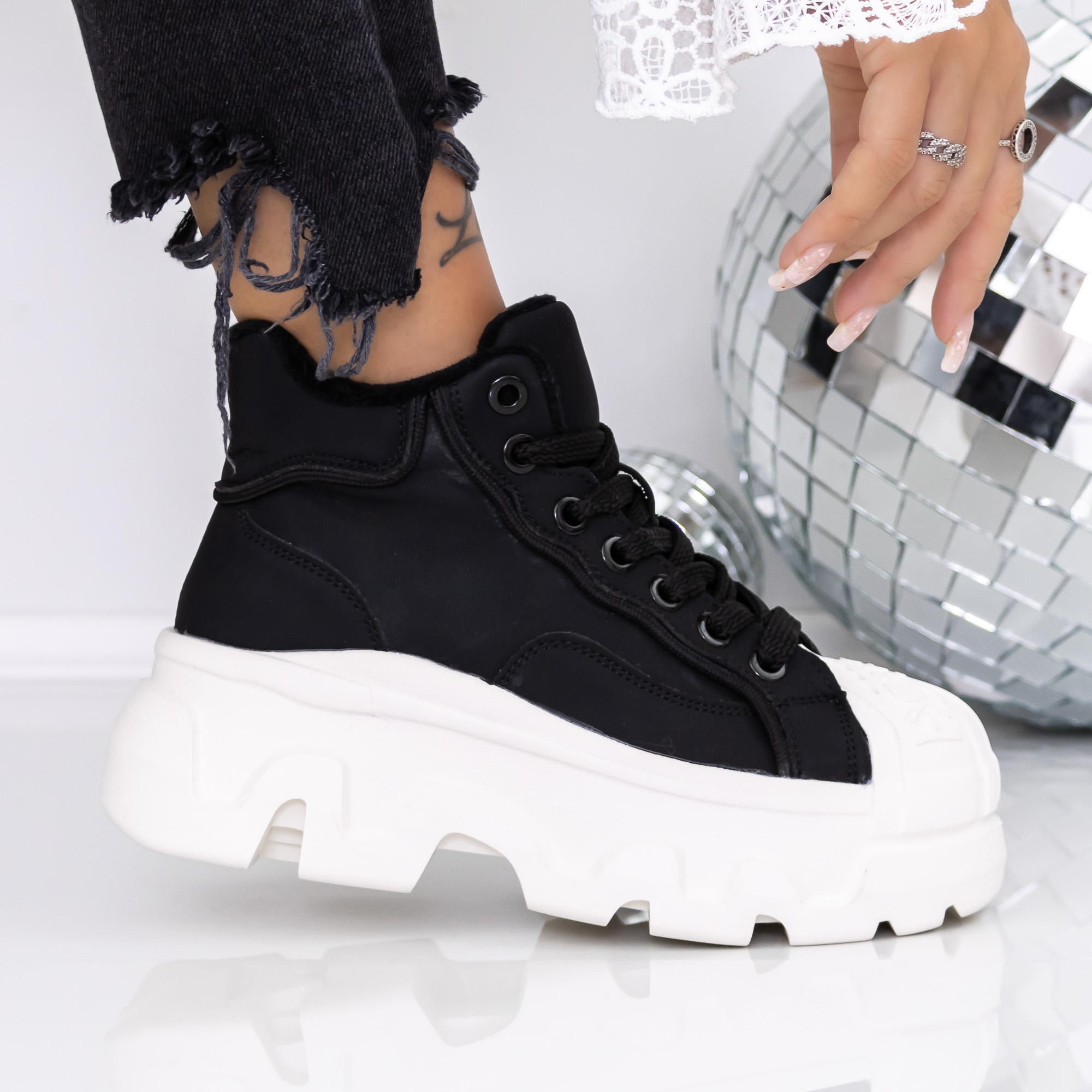 Ghete dama cu platforma negre din material sintetic Onita - Detalii produs
