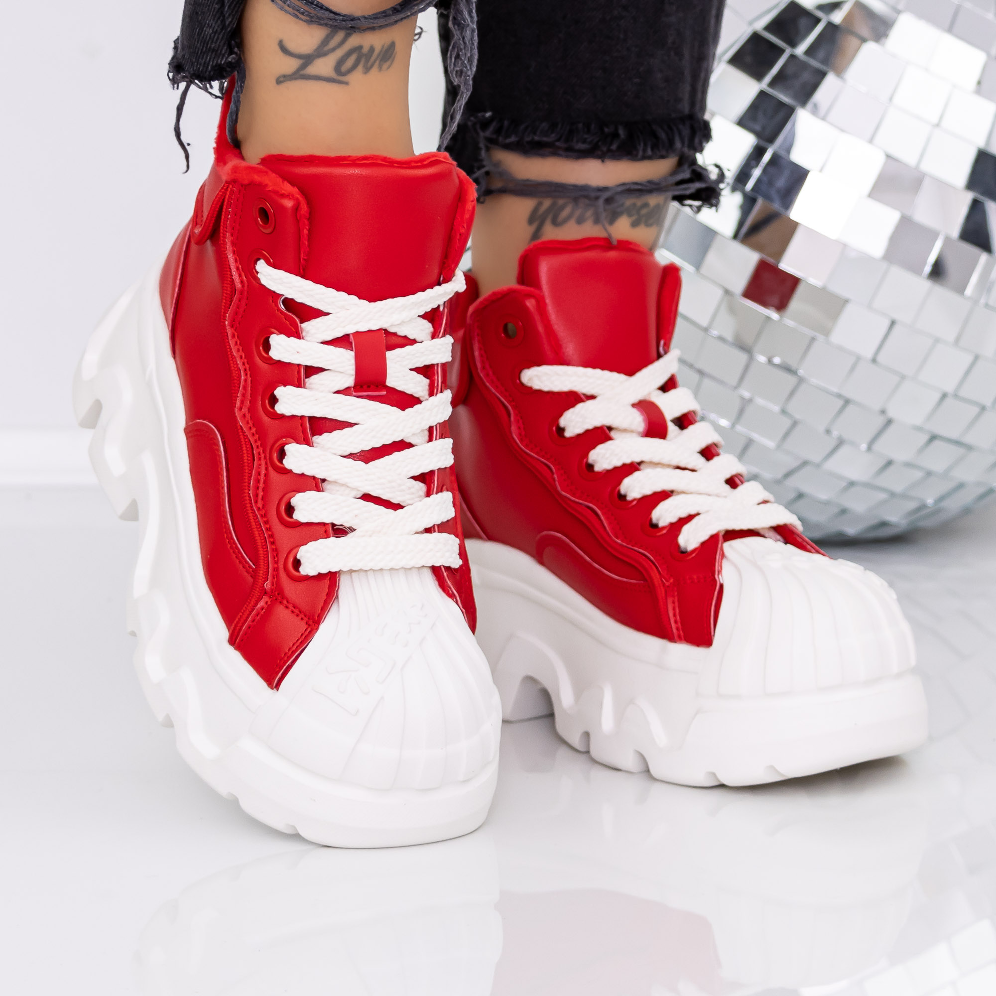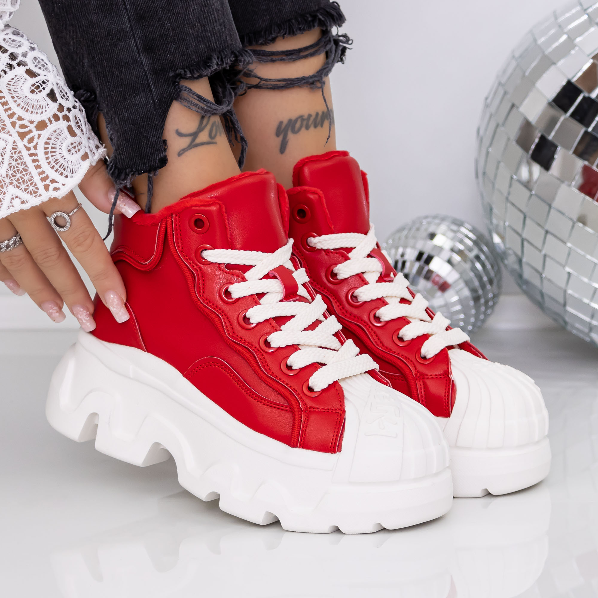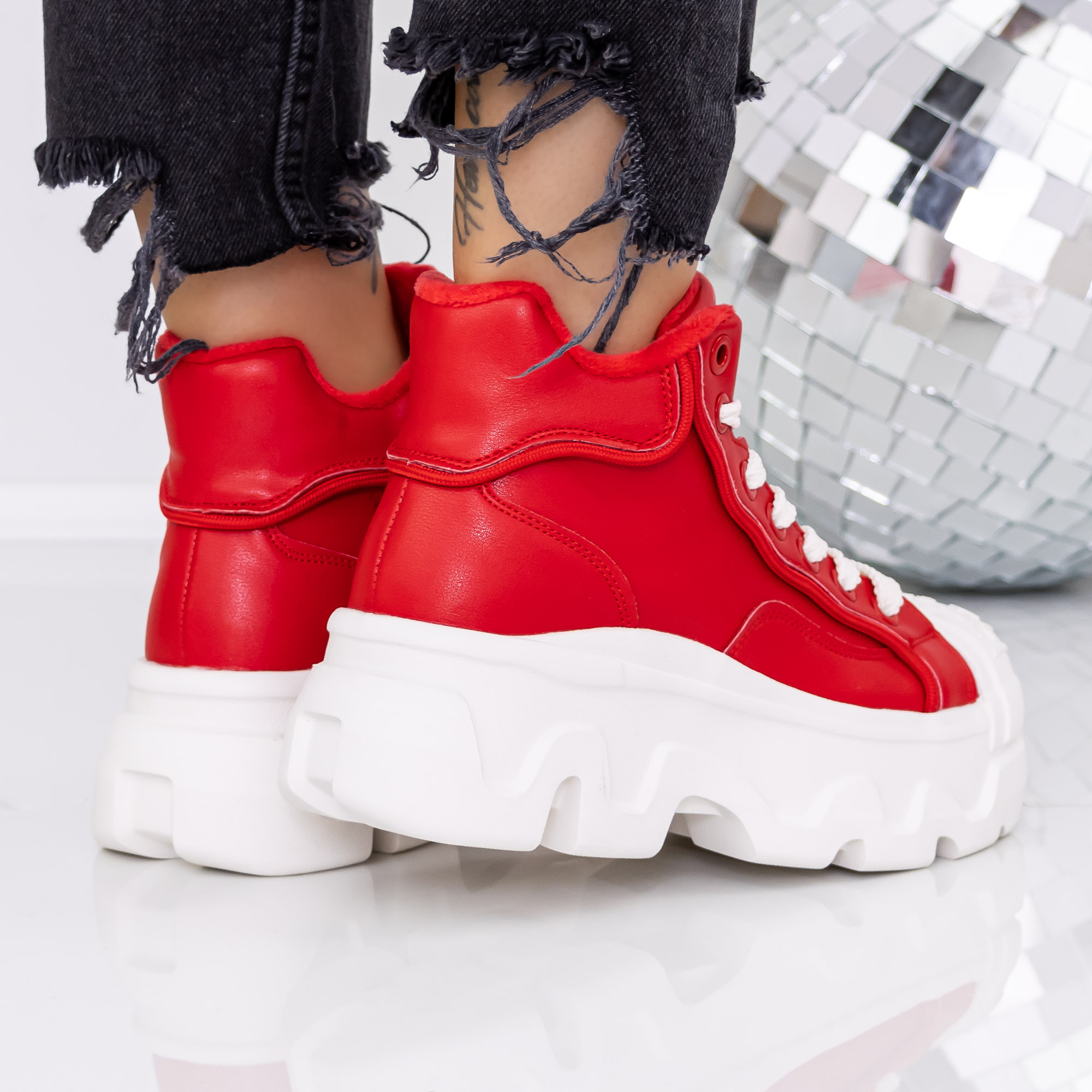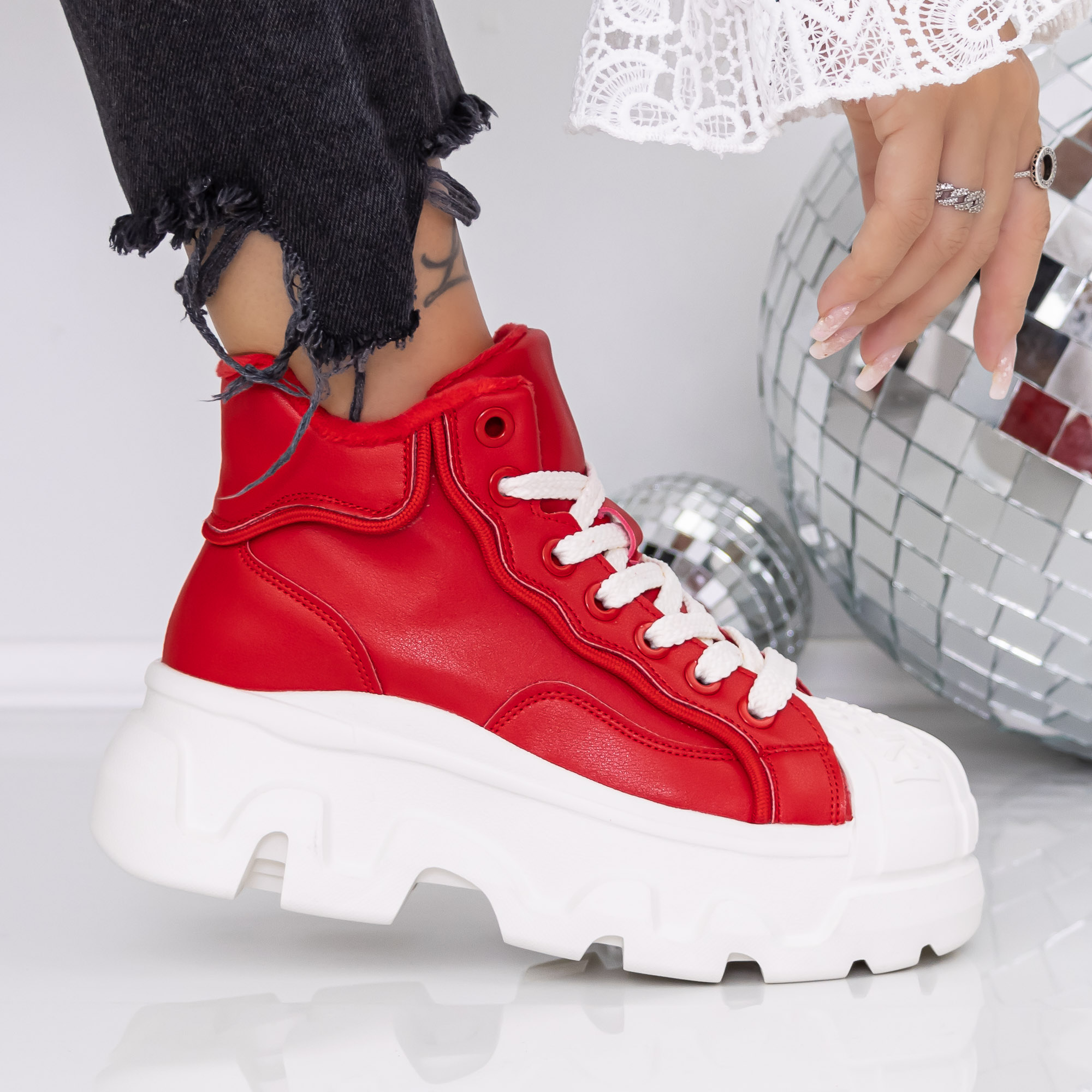 Ghete dama cu platforma rosii din piele ecologica Onita