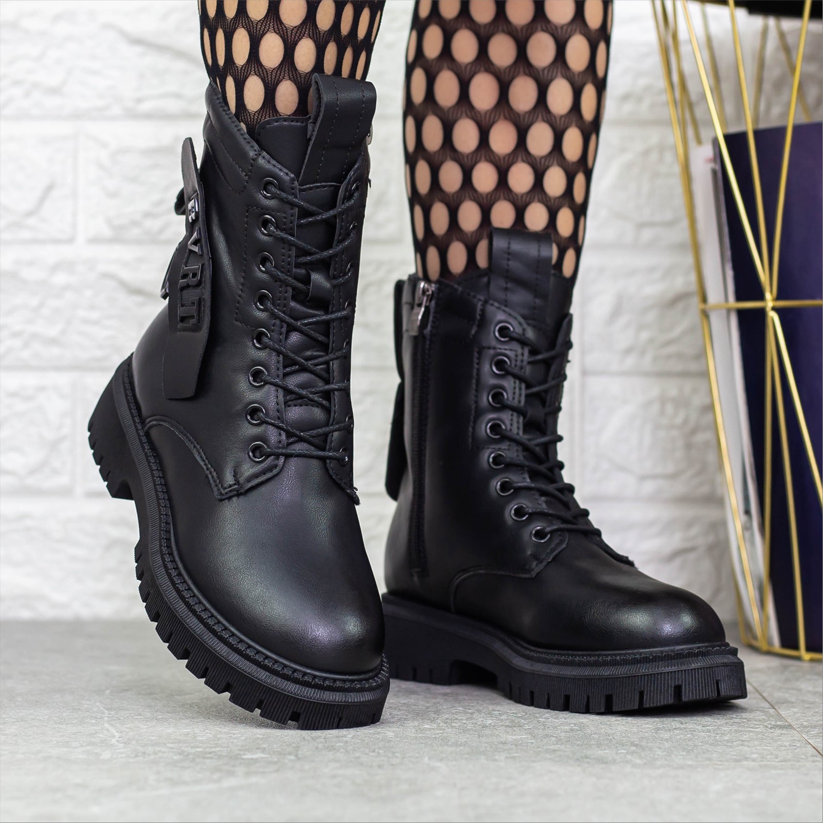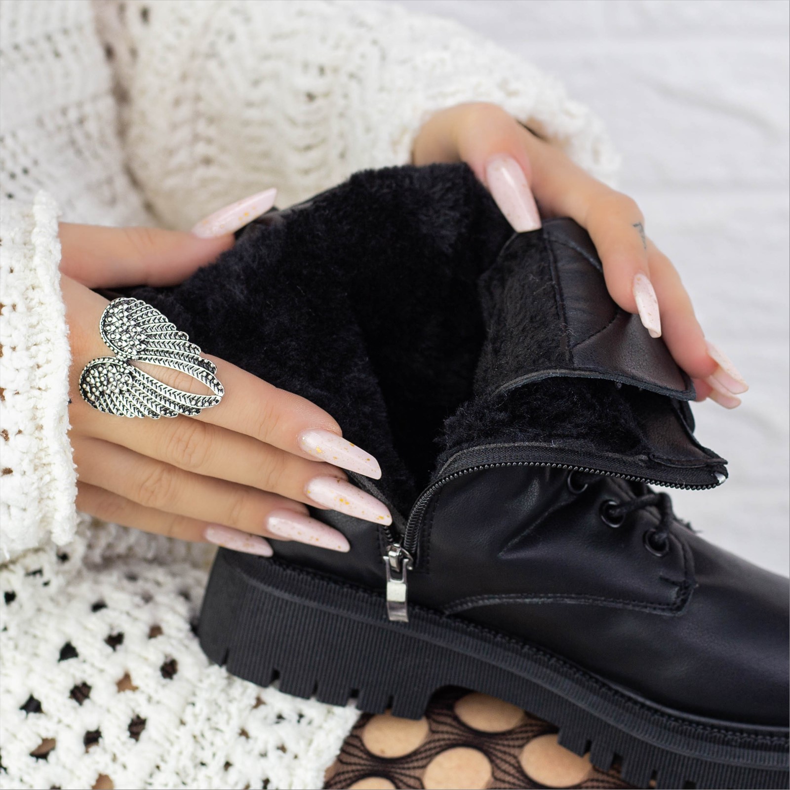 Ghete dama negre din piele ecologica Postra - Detalii produs