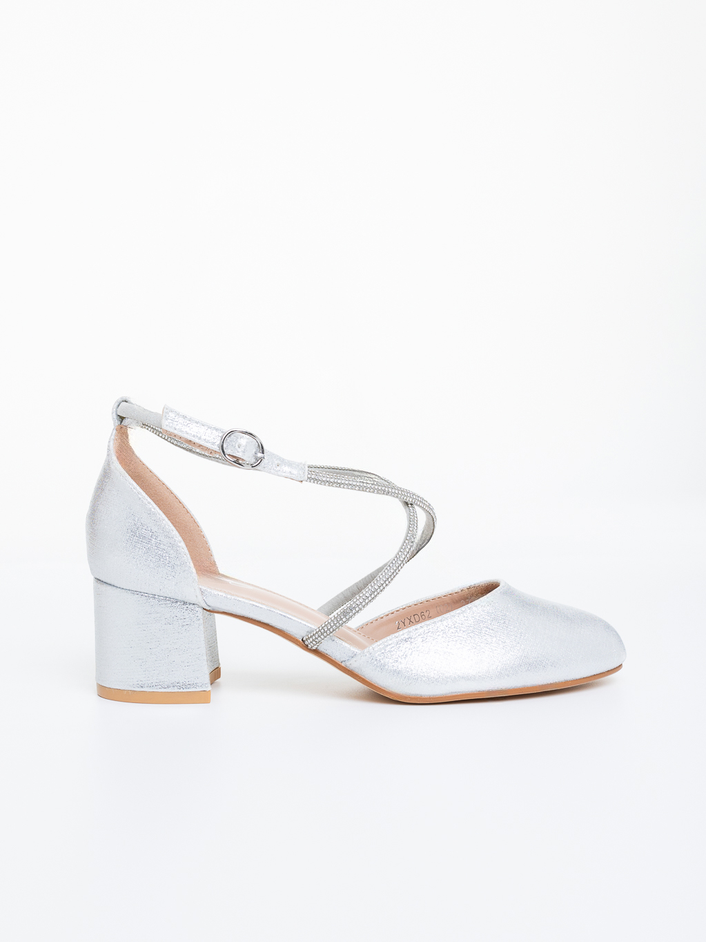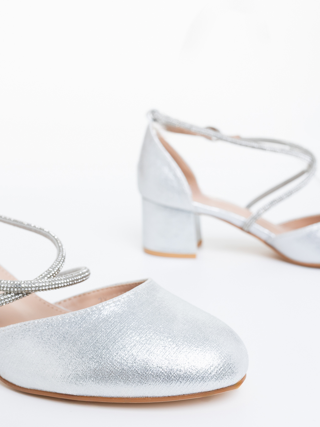 Pantofi dama argintii cu toc din piele ecologica Pomela - Detalii produs