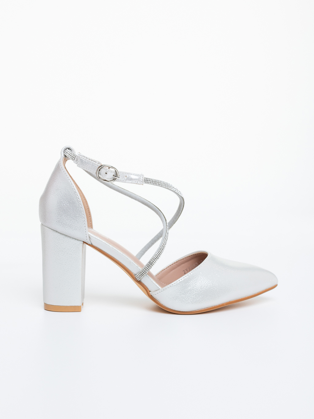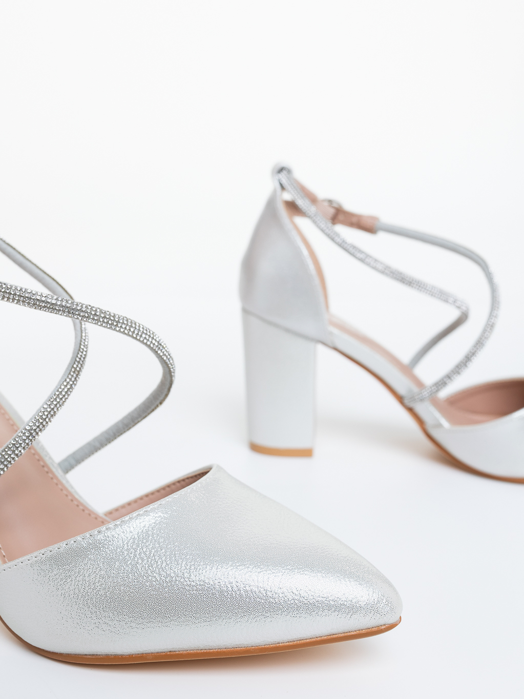 Pantofi dama cu toc argintii din material textil Harari - Detalii produs