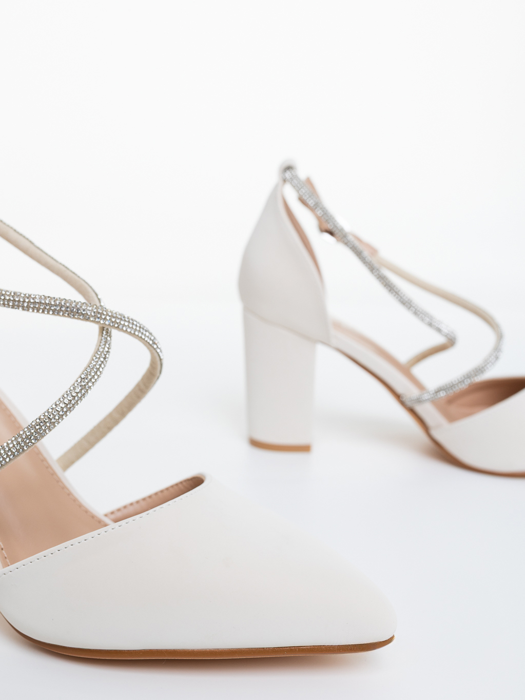 Pantofi dama cu toc bej din material textil Harari - Detalii produs