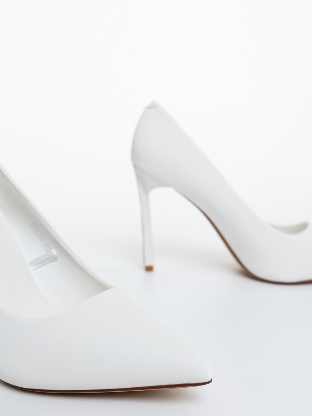 Pantofi dama cu toc albi din material textil Finja - Detalii produs