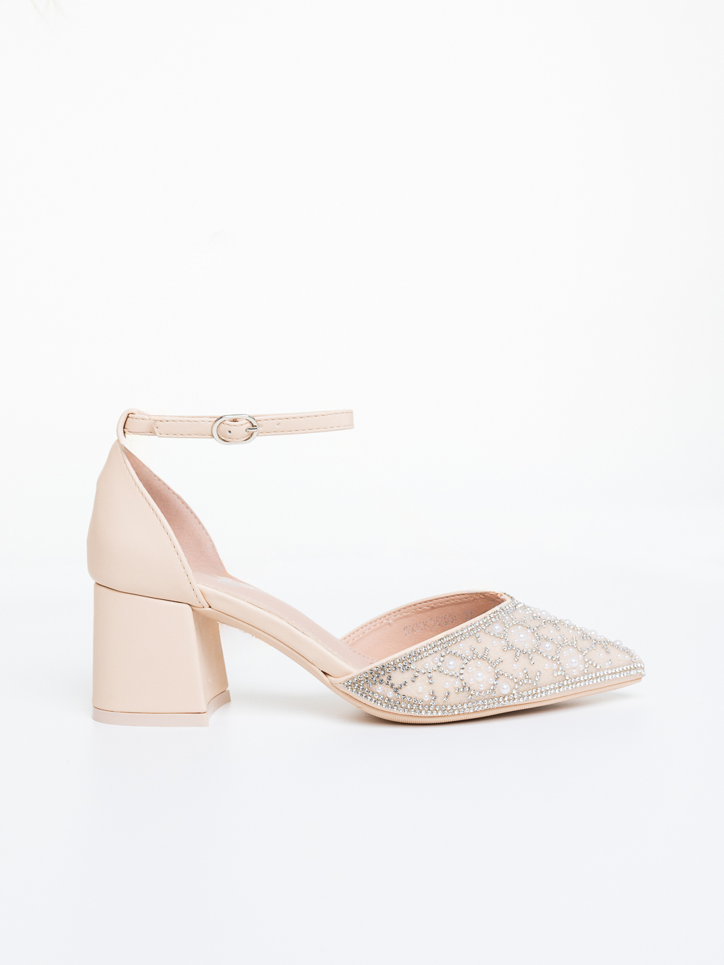 Pantofi dama cu toc bej din piele ecologica Lajita - Detalii produs