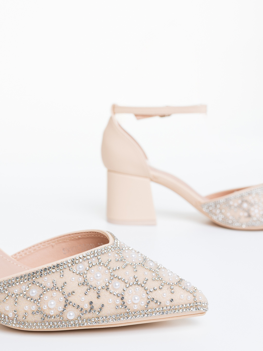 Pantofi dama cu toc bej din piele ecologica Lajita