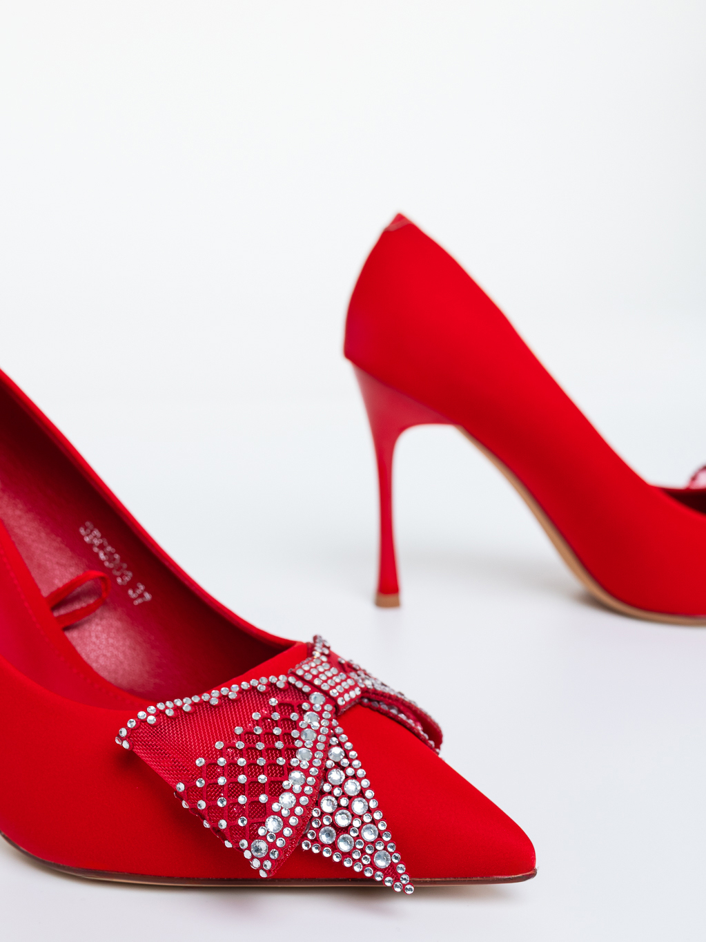 Pantofi dama cu toc rosii din material textil Hisoria - Alege ce ti se potriveste si remarca-te