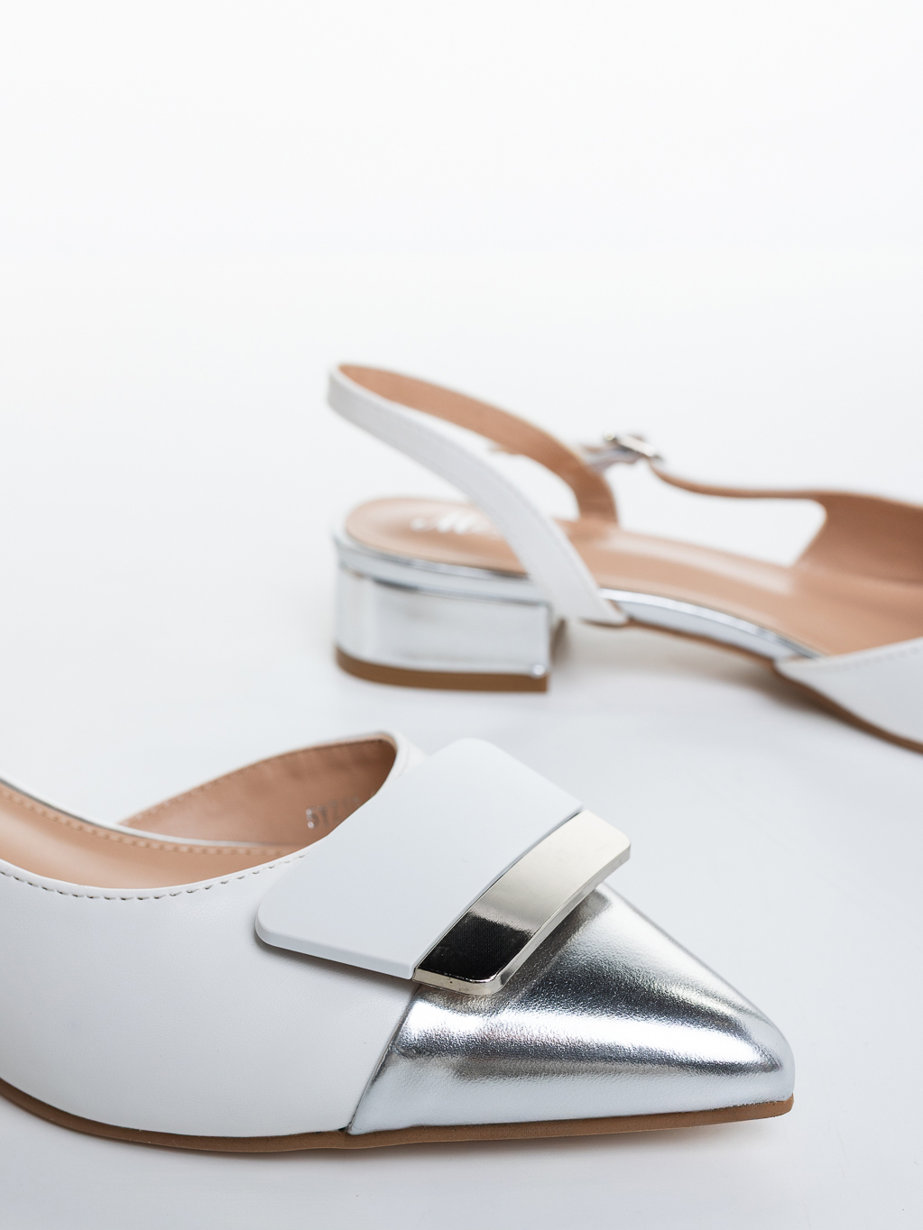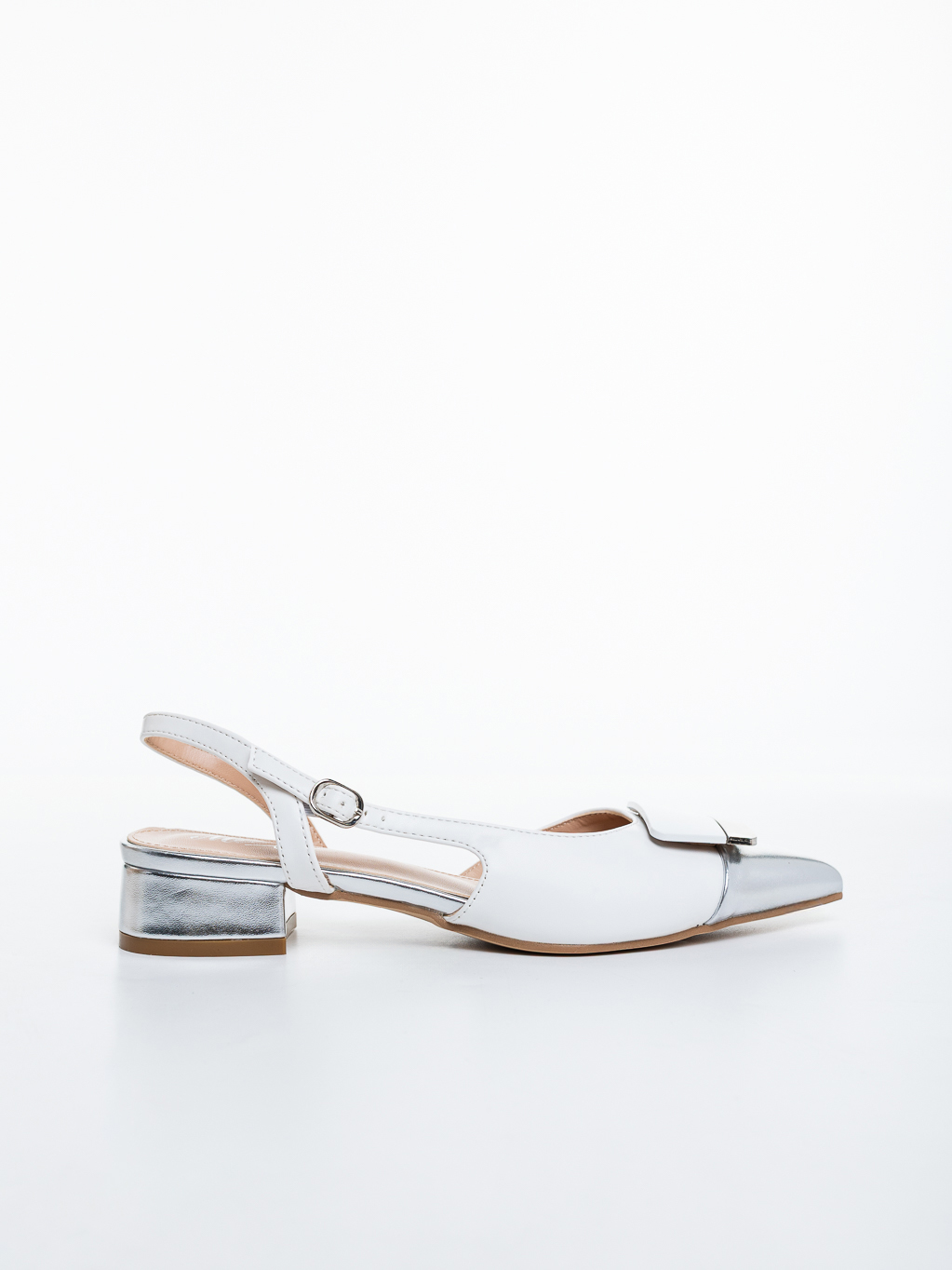 Pantofi dama cu toc alb cu argintiu din piele ecologica Gentana - Detalii produs