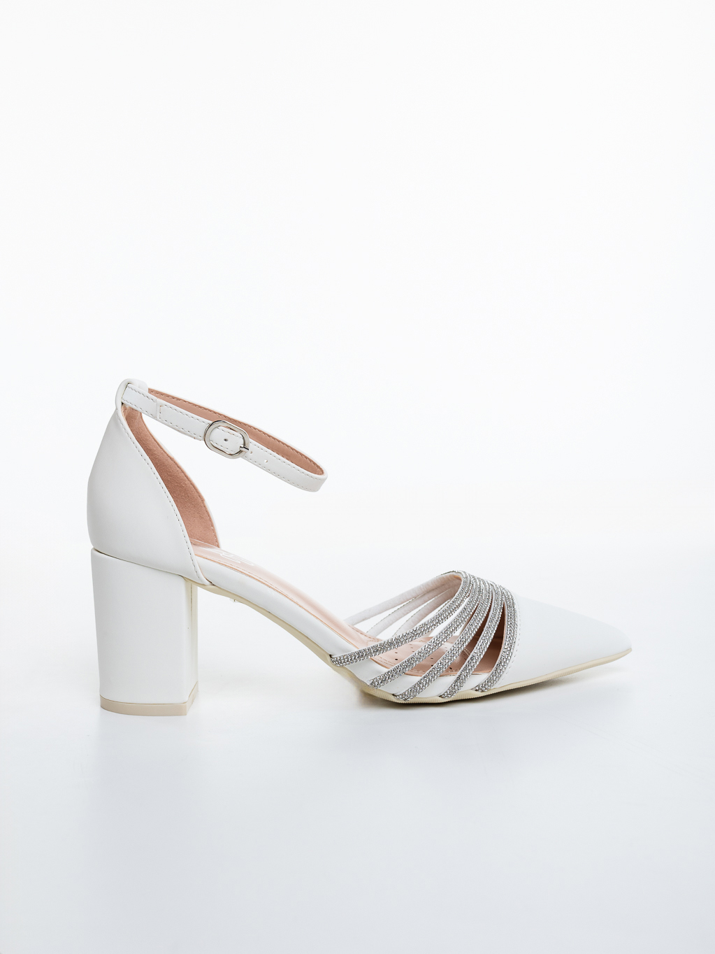 Pantofi dama cu toc albi din piele ecologica Tesada - Detalii produs
