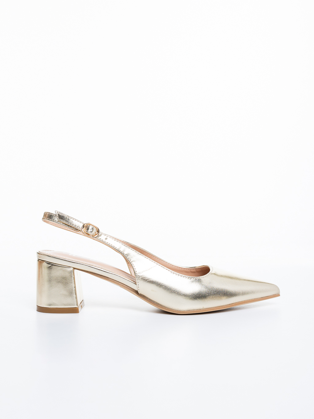 Pantofi dama cu toc aurii din piele ecologica Natena - Detalii produs