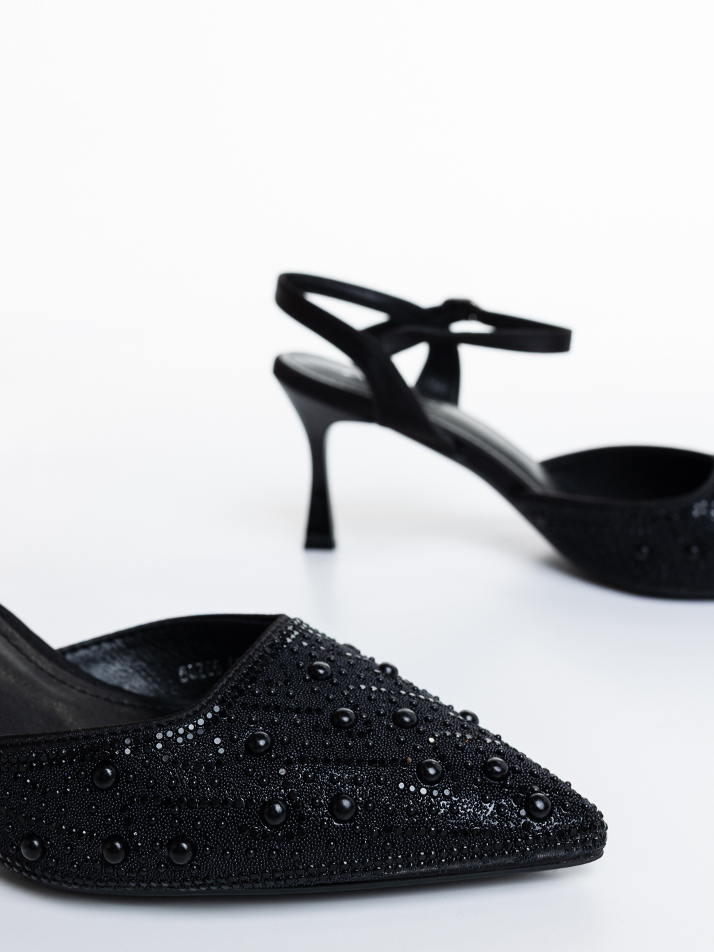 Pantofi dama cu toc negre din material textil Ziania - Detalii produs