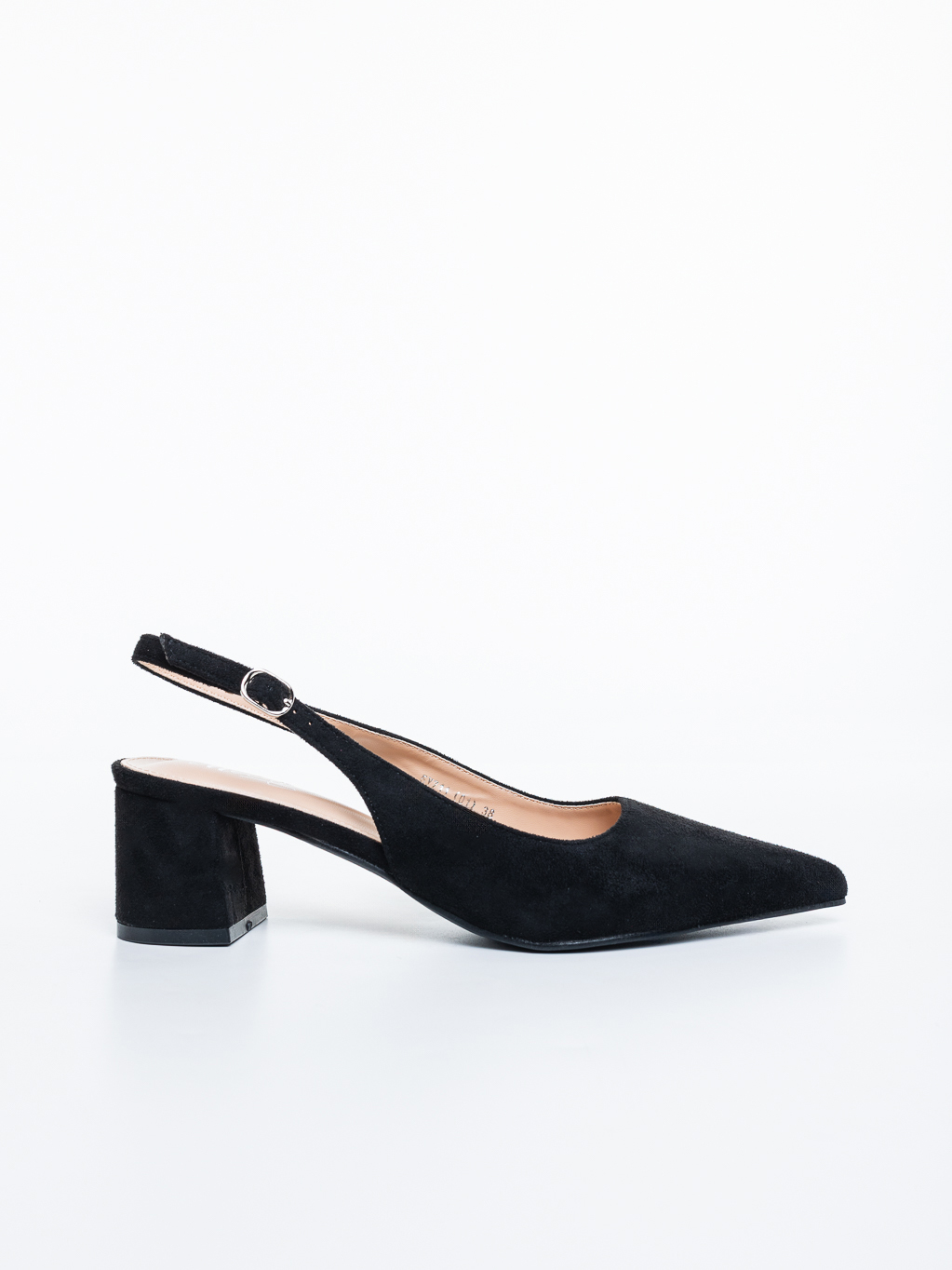 Pantofi dama cu toc negri din material textil Natena - Detalii produs