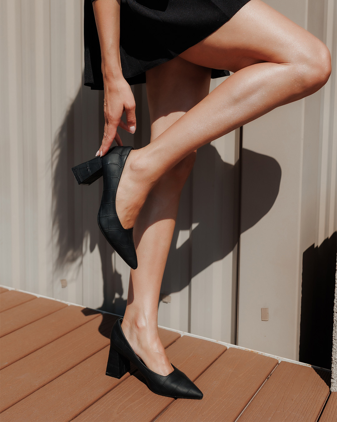 Pantofi dama cu toc negri din piele ecologica Ludena - Alege ce ti se potriveste si remarca-te