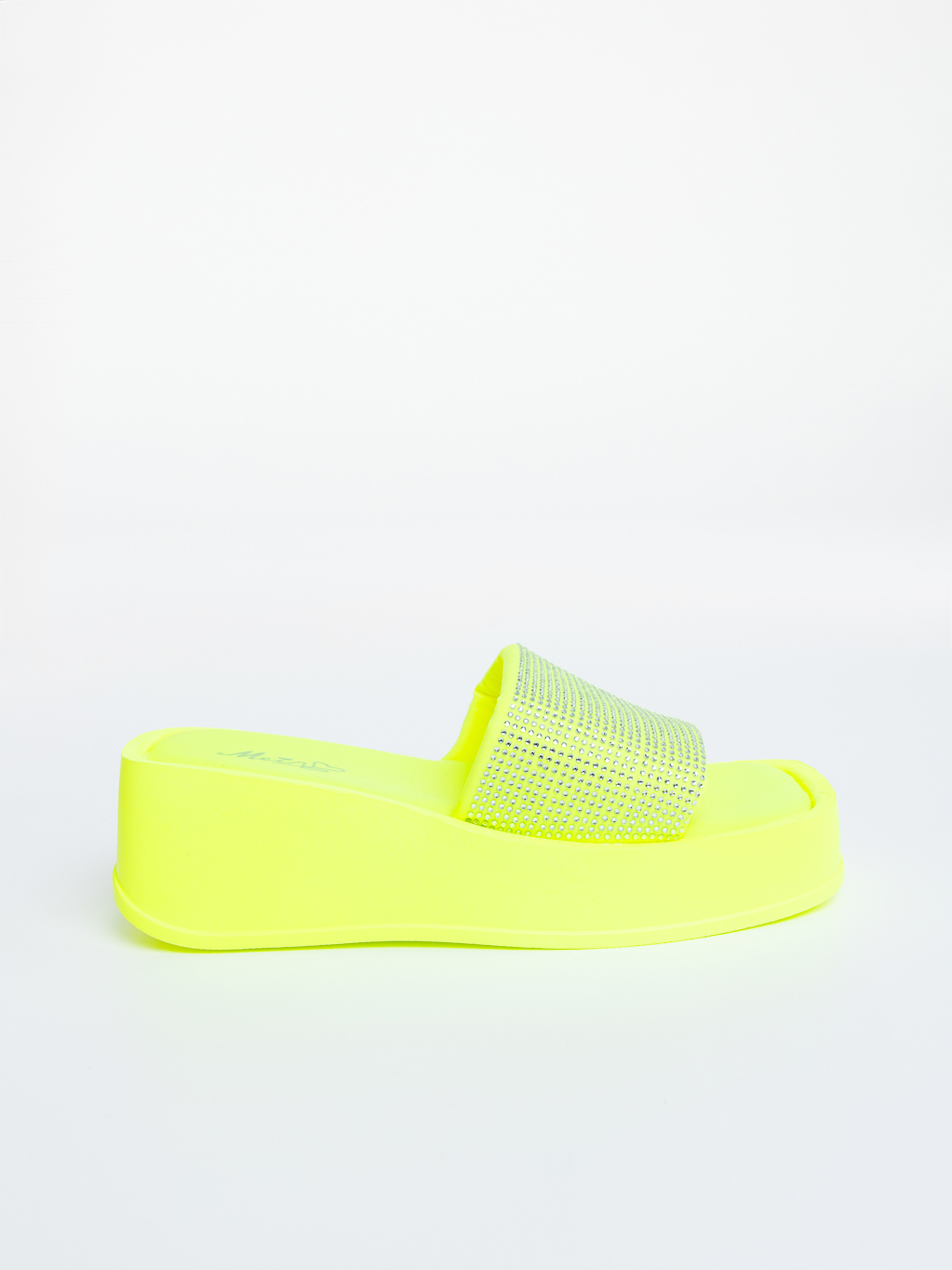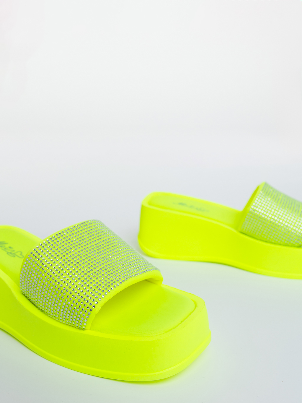 Papuci dama cu platforma galbeni fluorescent din material sintetic Soren - Detalii produs