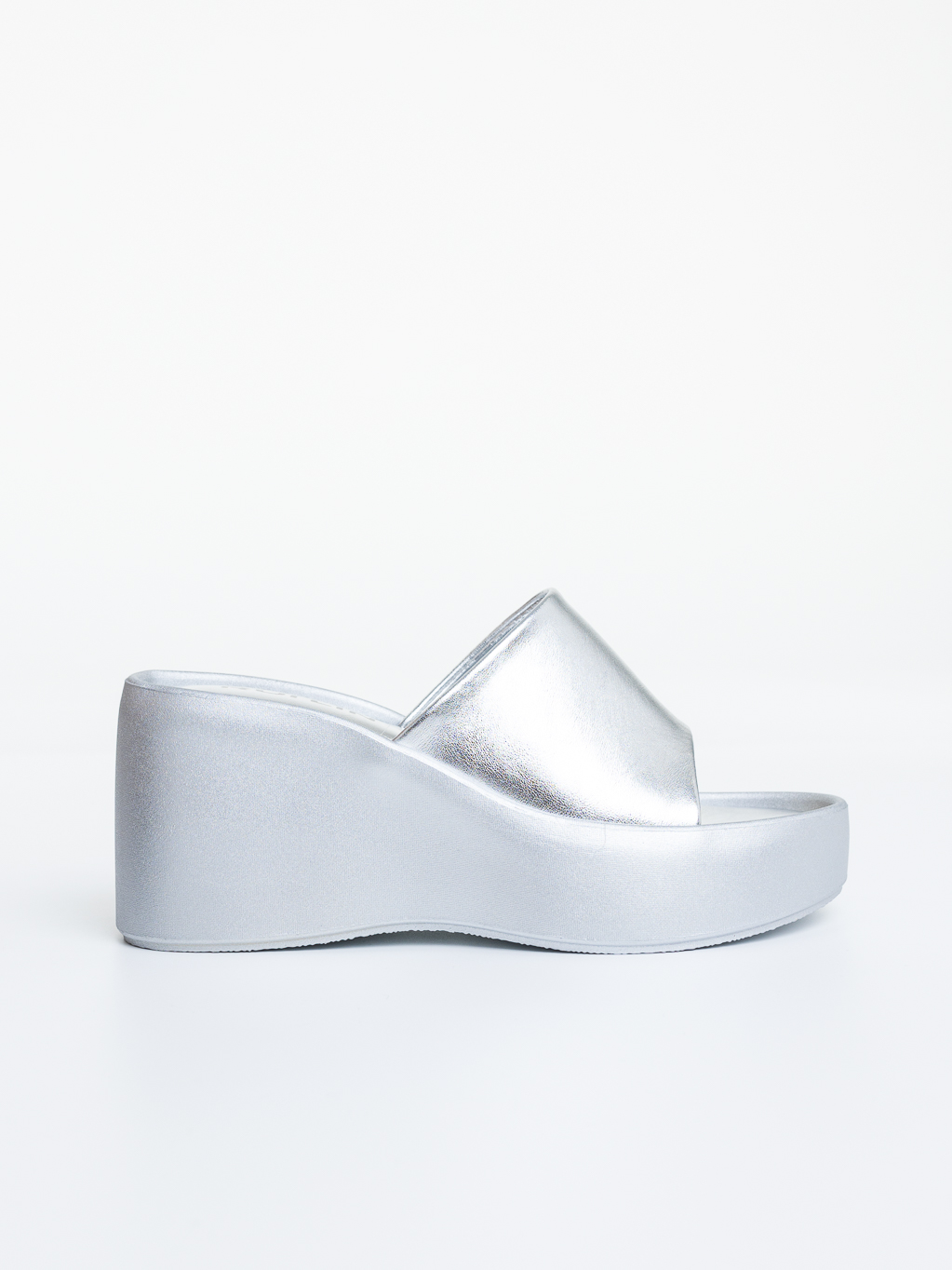 Papuci dama cu platforma argintii din piele ecologica Myrtle