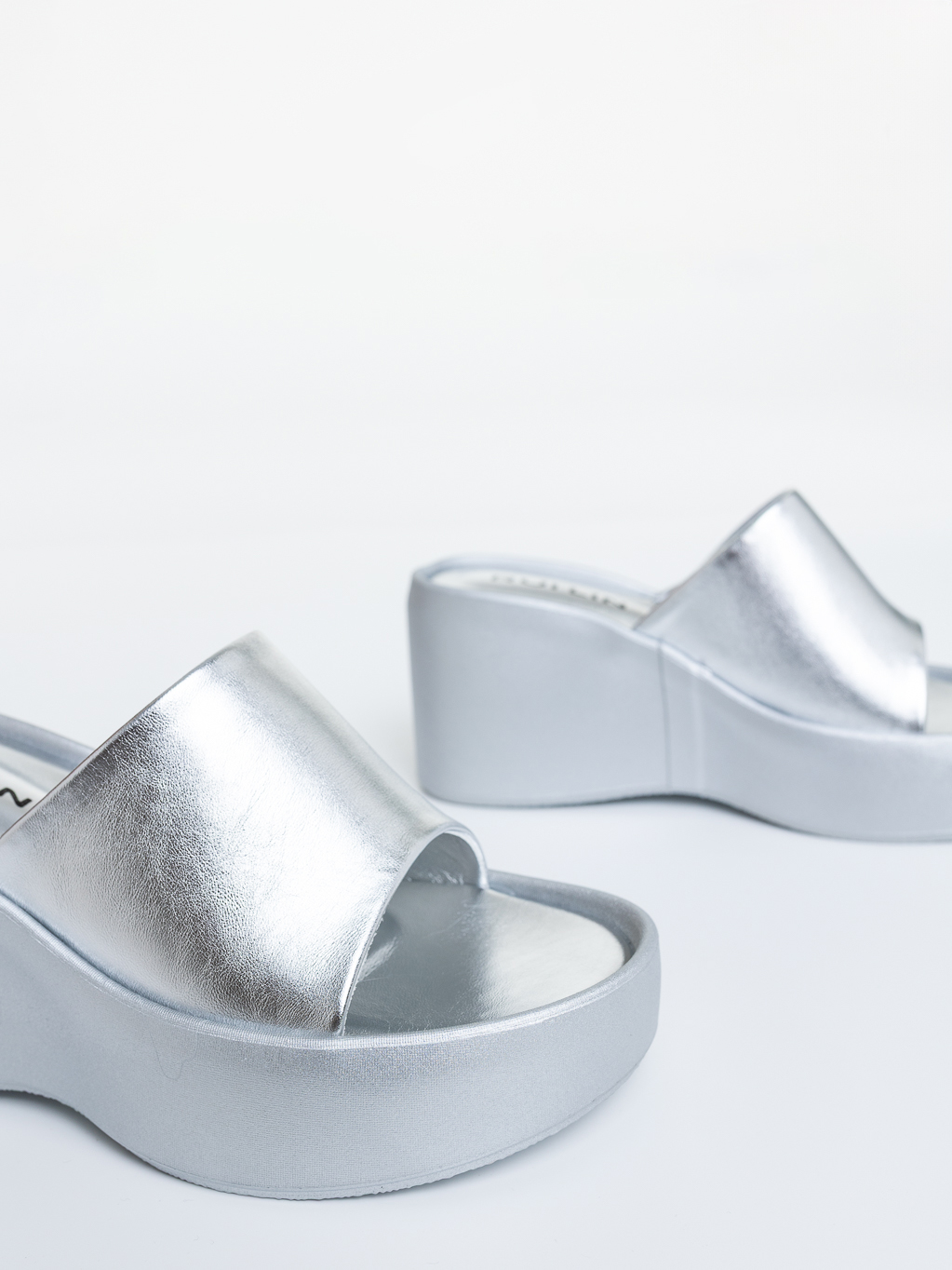 Papuci dama cu platforma argintii din piele ecologica Myrtle - Detalii produs