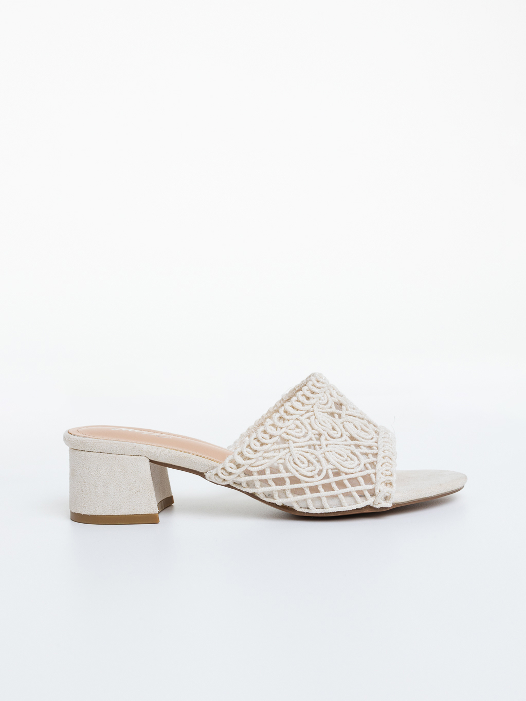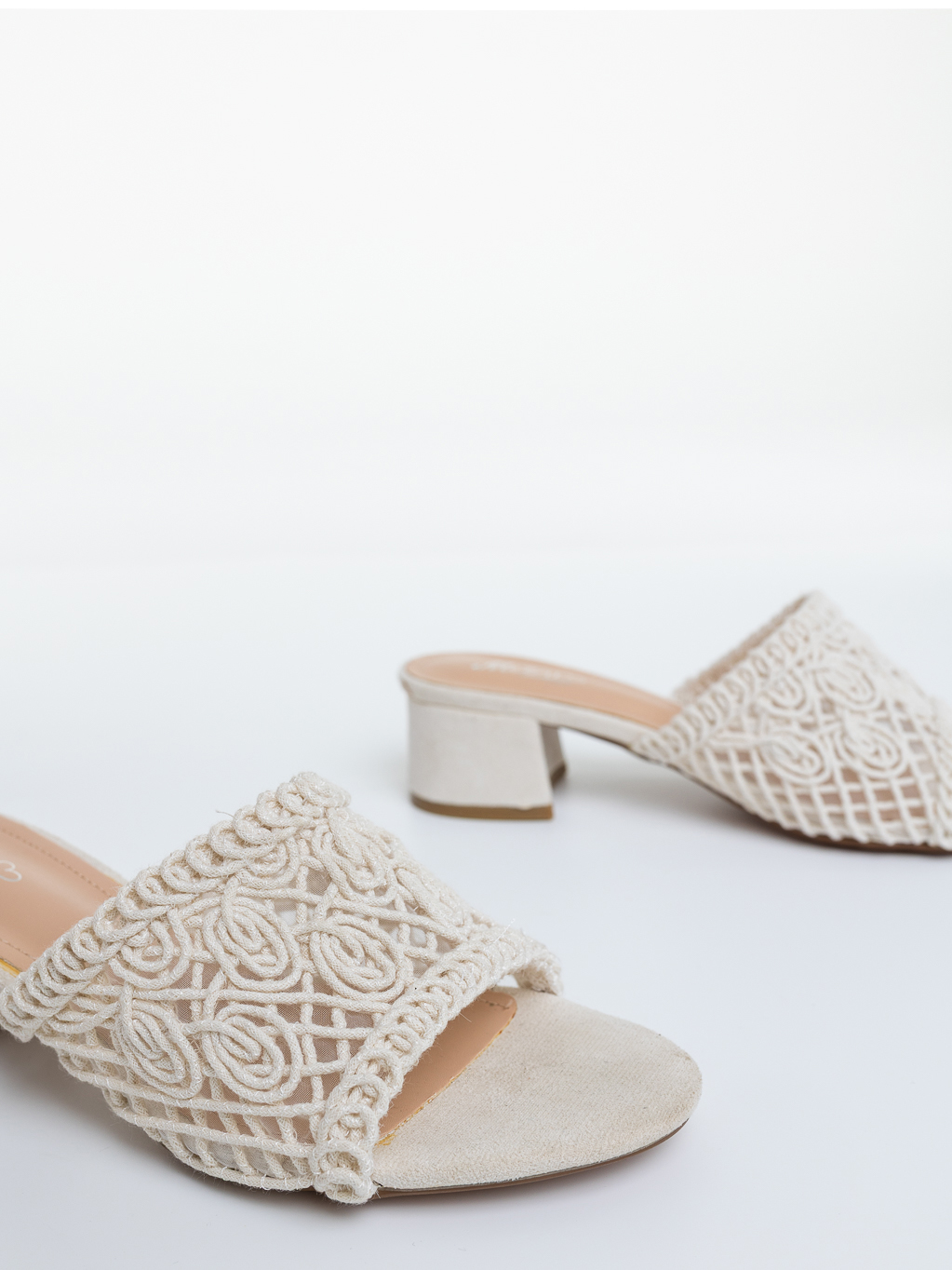 Papuci dama cu toc bej din material textil Soulana - Detalii produs