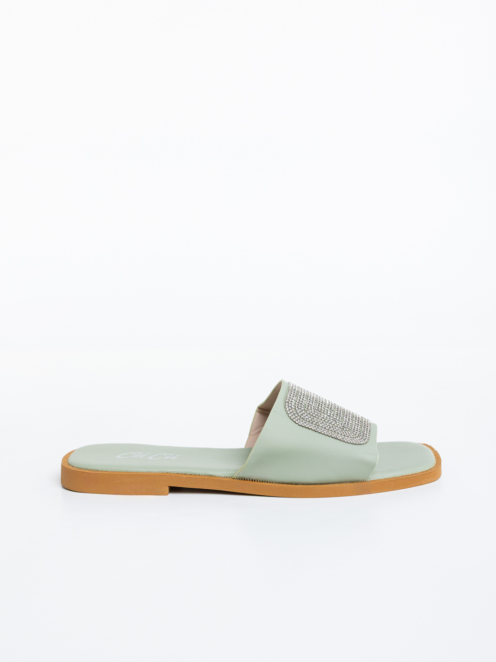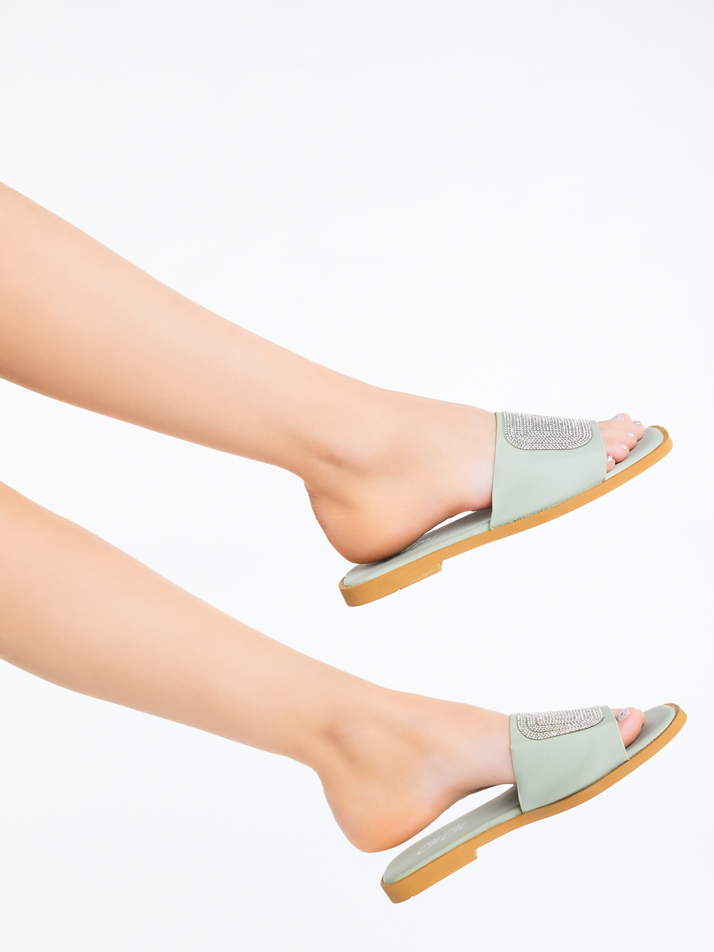 Papuci dama verzi din piele ecologica Miya - Detalii produs