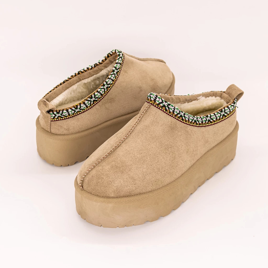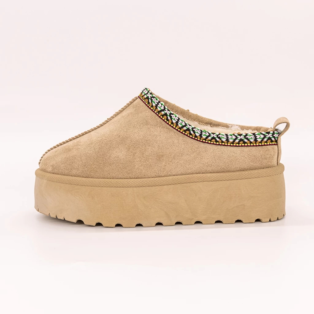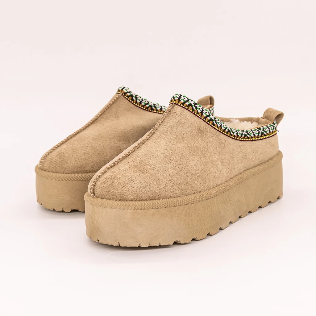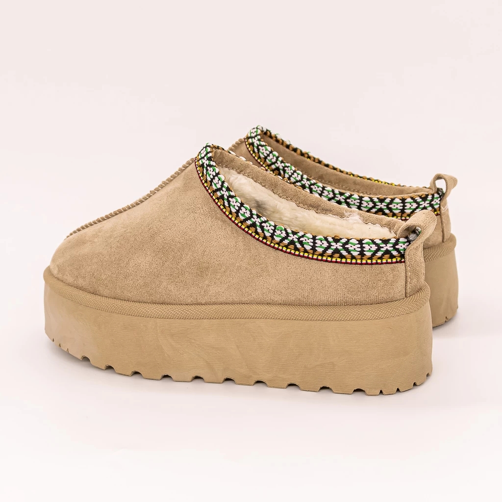Papuci dama bej inchis din material textil Karama - Detalii produs