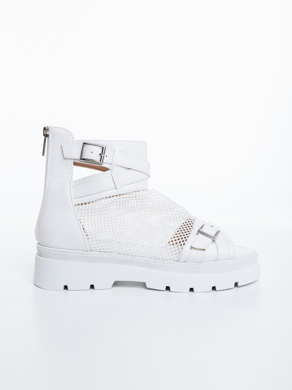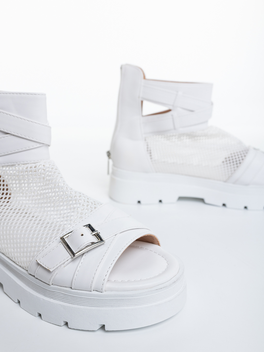 Sandale dama albe din piele ecologica si material textil Tenea - Detalii produs