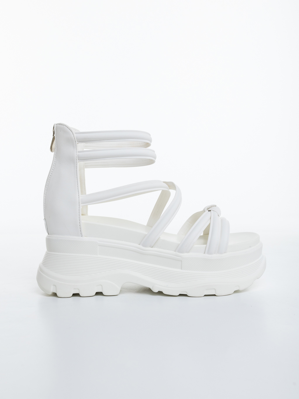 Sandale dama cu platforma albe din piele ecologica Hanata