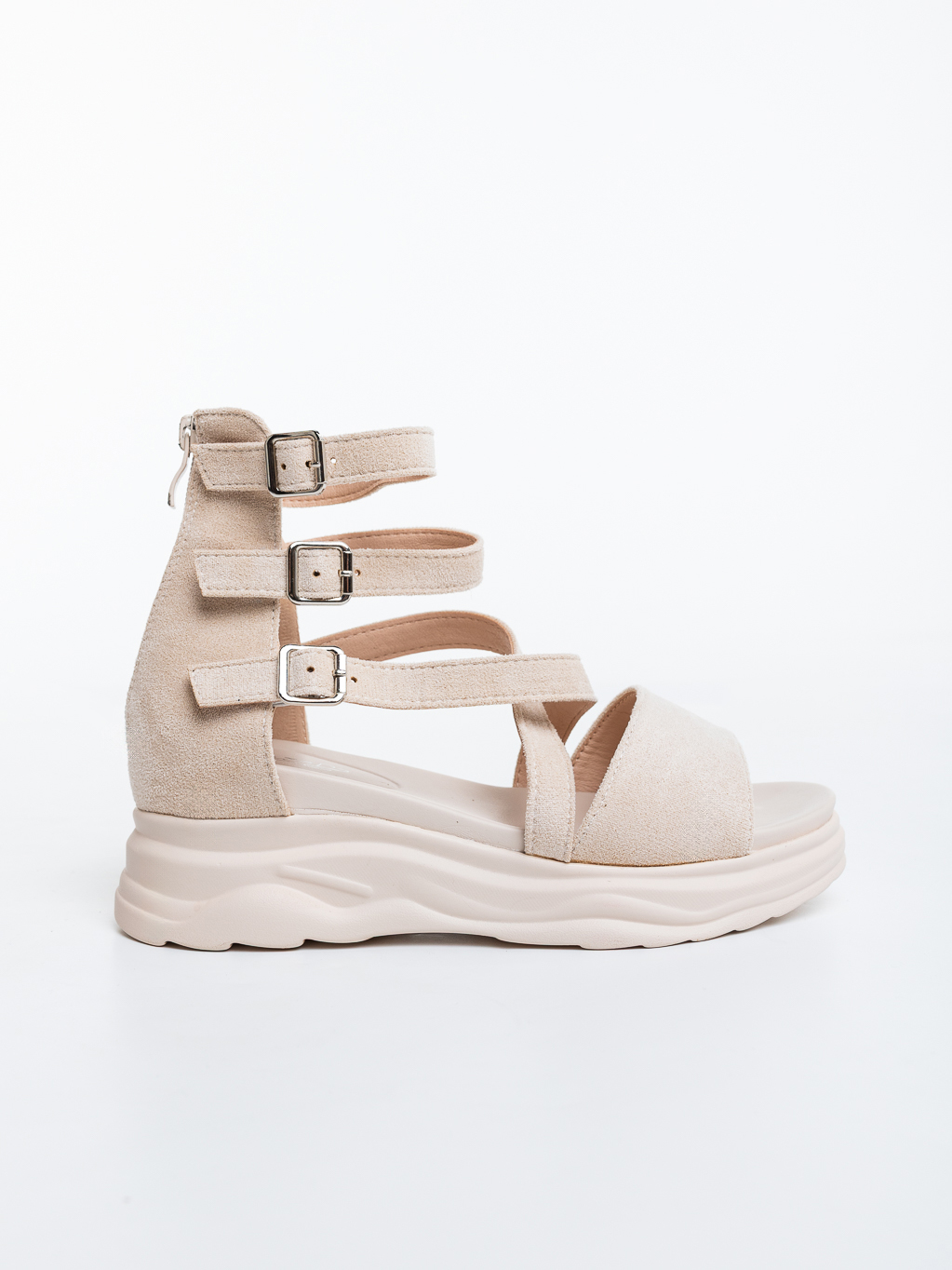 Sandale dama cu platforma bej inchis din material textil Dazara - Detalii produs