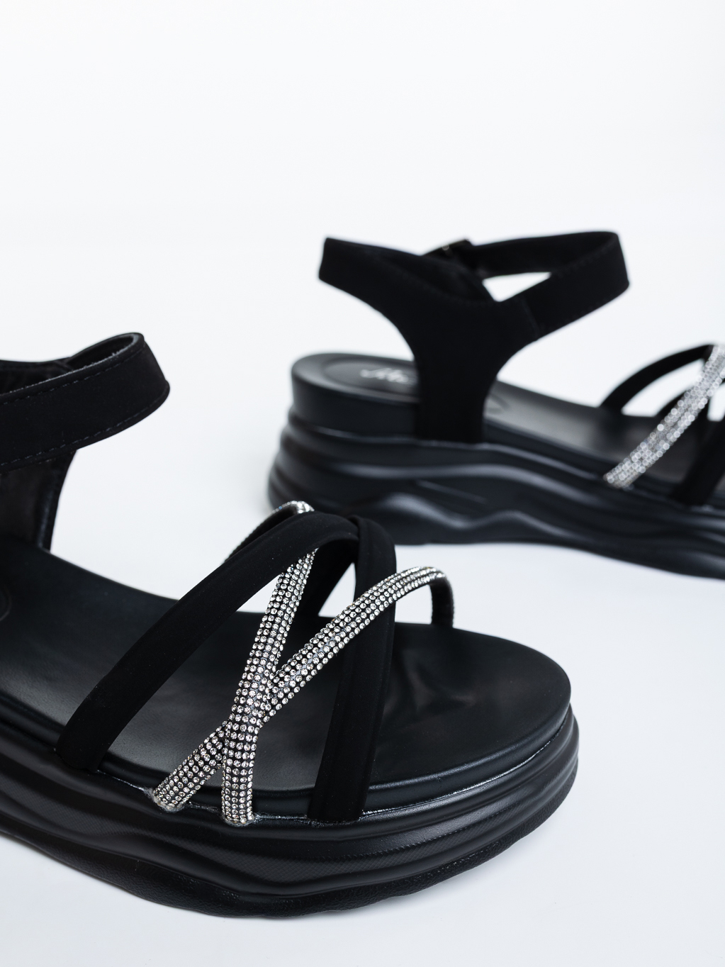 Sandale dama cu platforma negre din material textil Adasa - Detalii produs