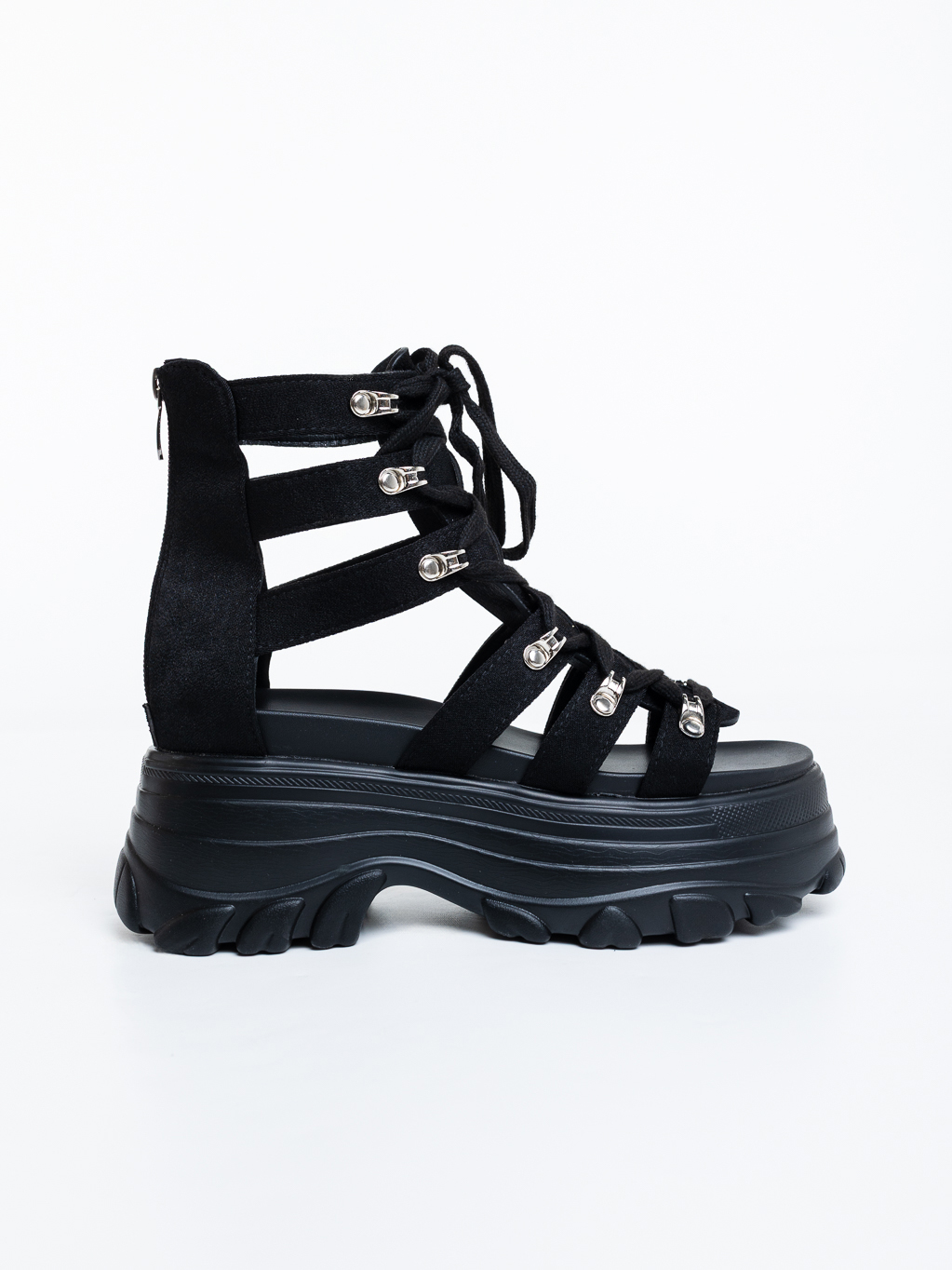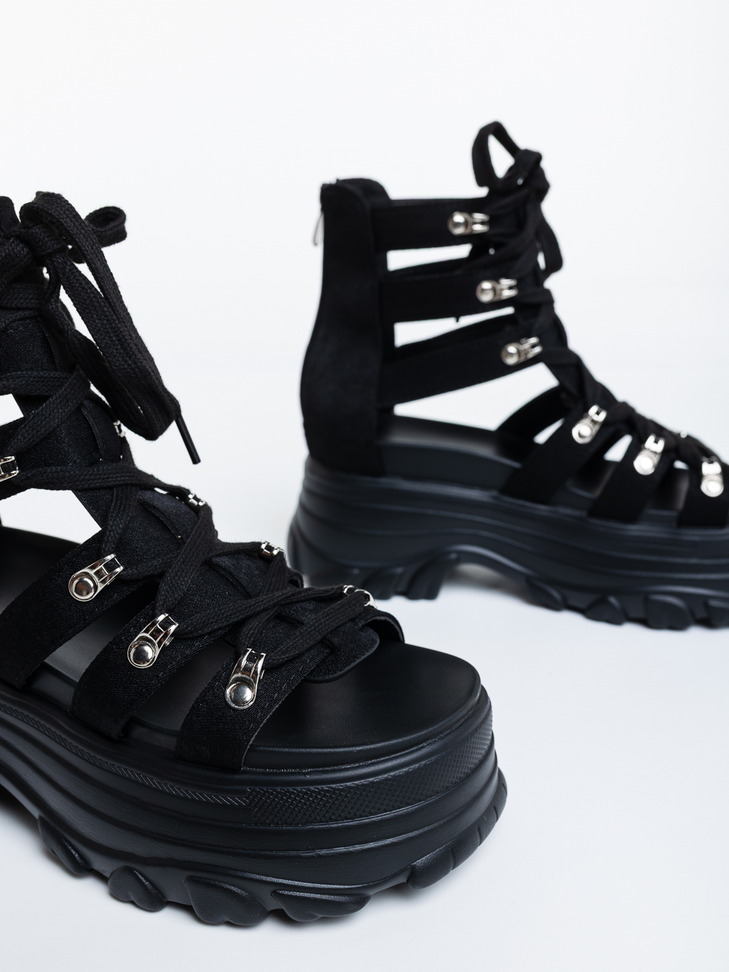 Sandale dama cu platforma negre din material textil Escava - Detalii produs