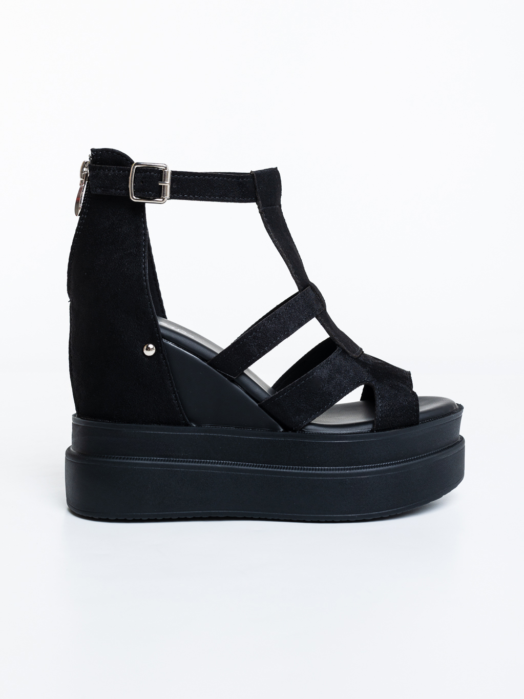 Sandale dama cu platforma negre din material textil Kavaria - Detalii produs