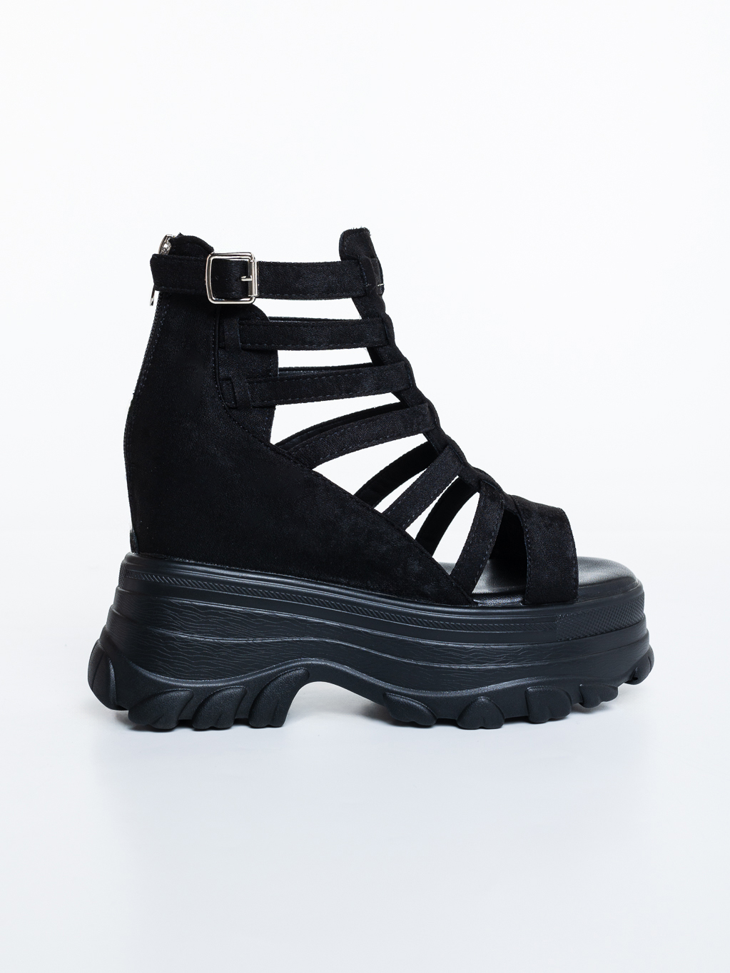 Sandale dama cu platforma negre din material textil Lahana - Detalii produs
