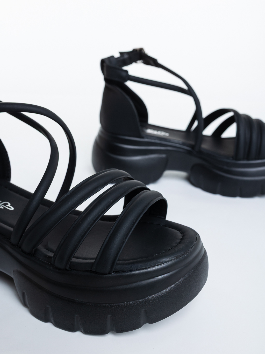 Sandale dama cu platforma negre din piele ecologica Alovara - Detalii produs