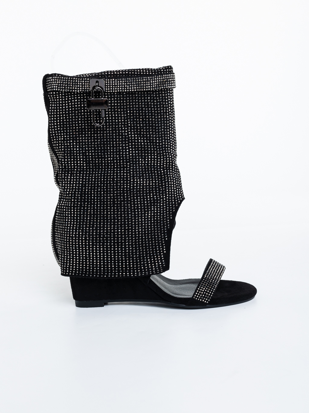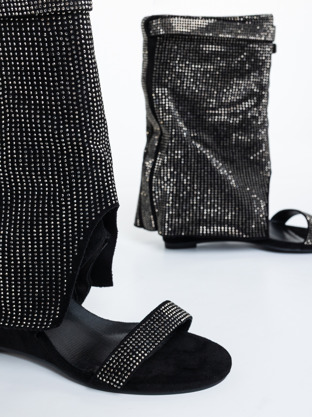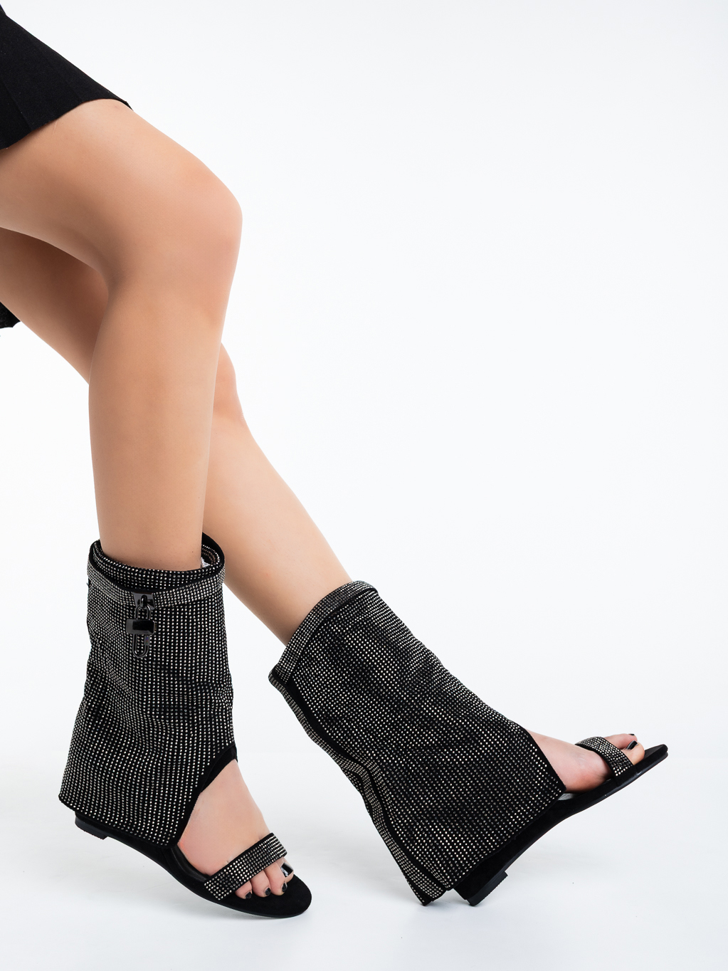 Sandale dama cu platforma negre din piele naturala intoarsa Mihana