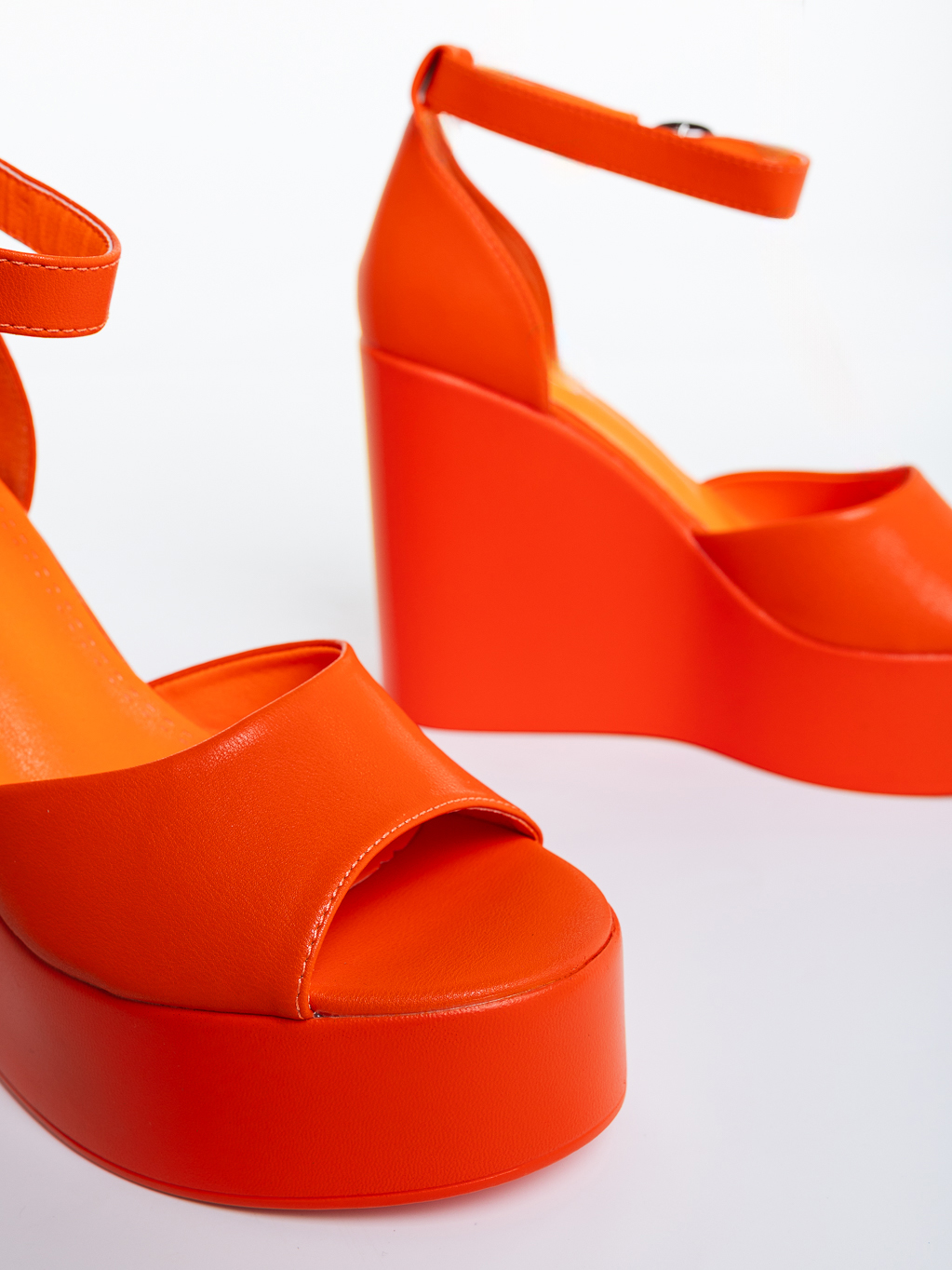 Sandale dama cu platforma portocalii din piele ecologica Haruha