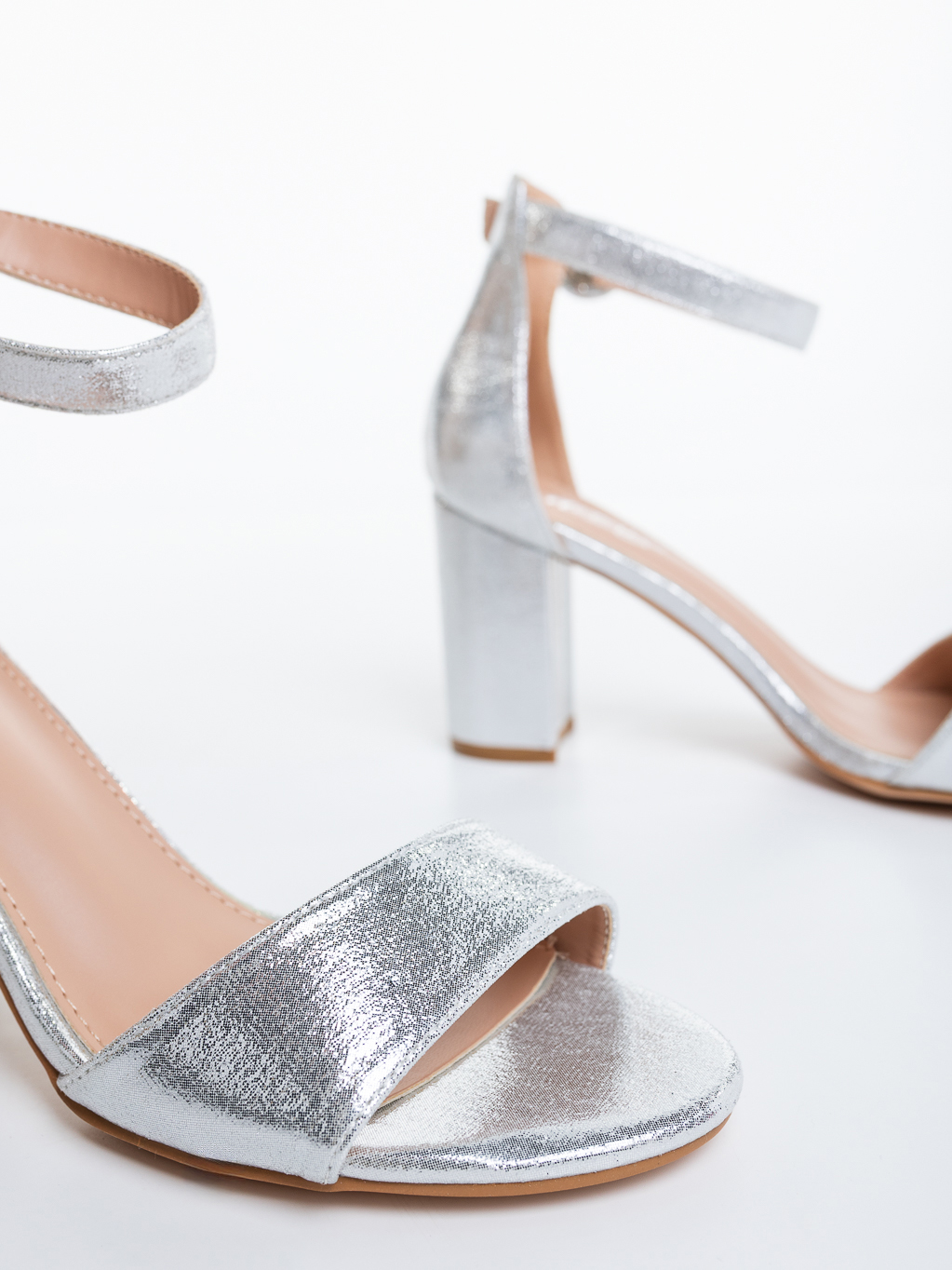 Sandale dama cu toc argintii din material textil Azania - Detalii produs