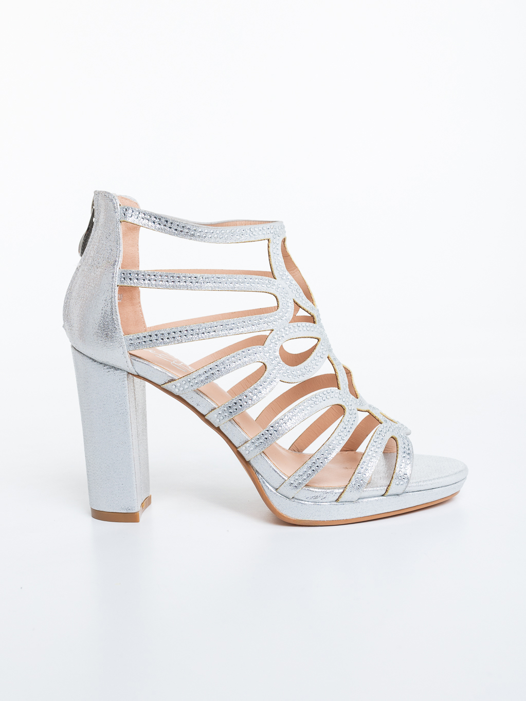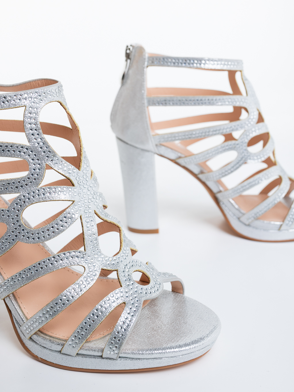 Sandale dama cu toc argintii din material textil Darana - Detalii produs