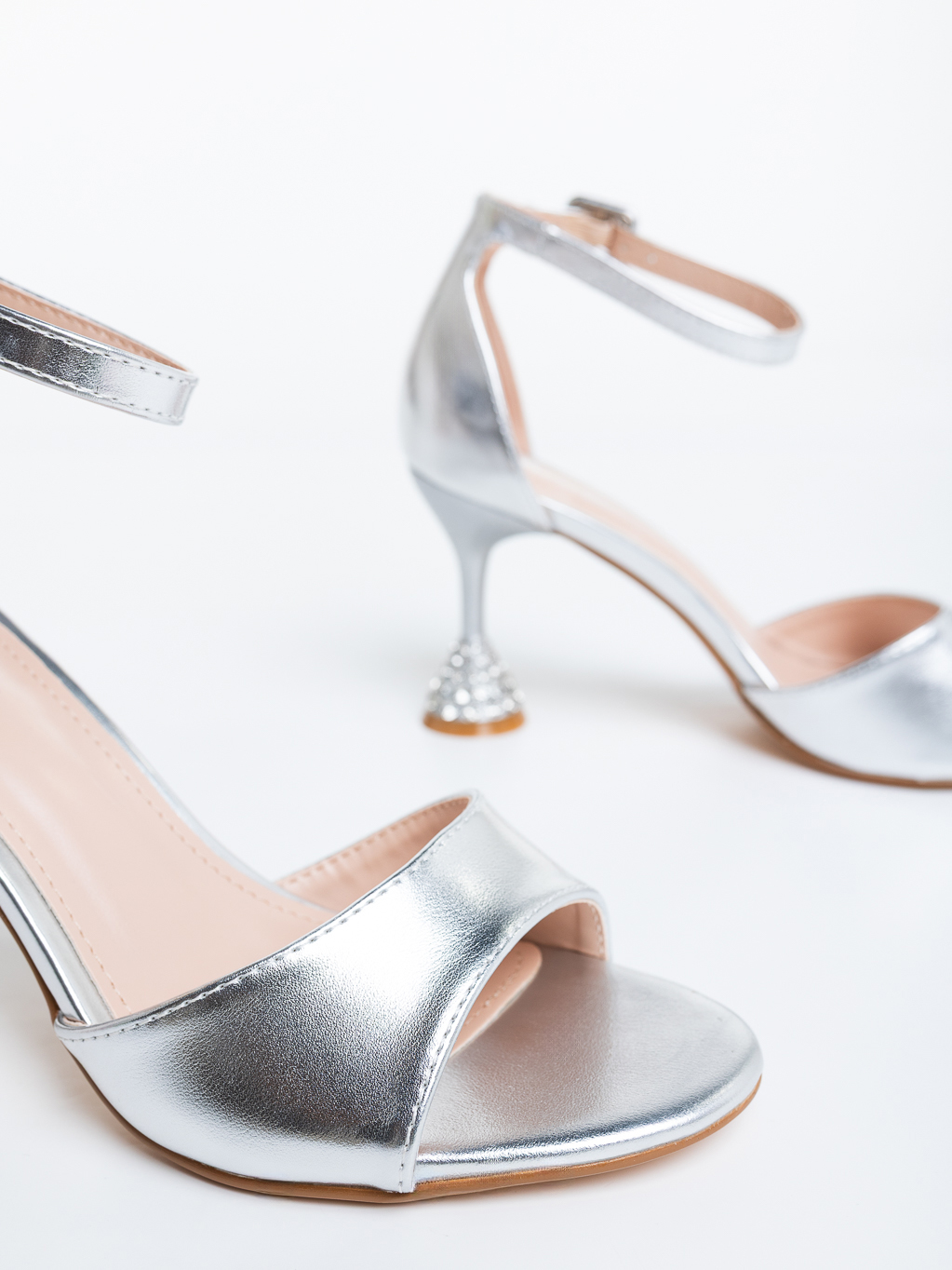 Sandale dama cu toc argintii din piele ecologica Casara - Detalii produs
