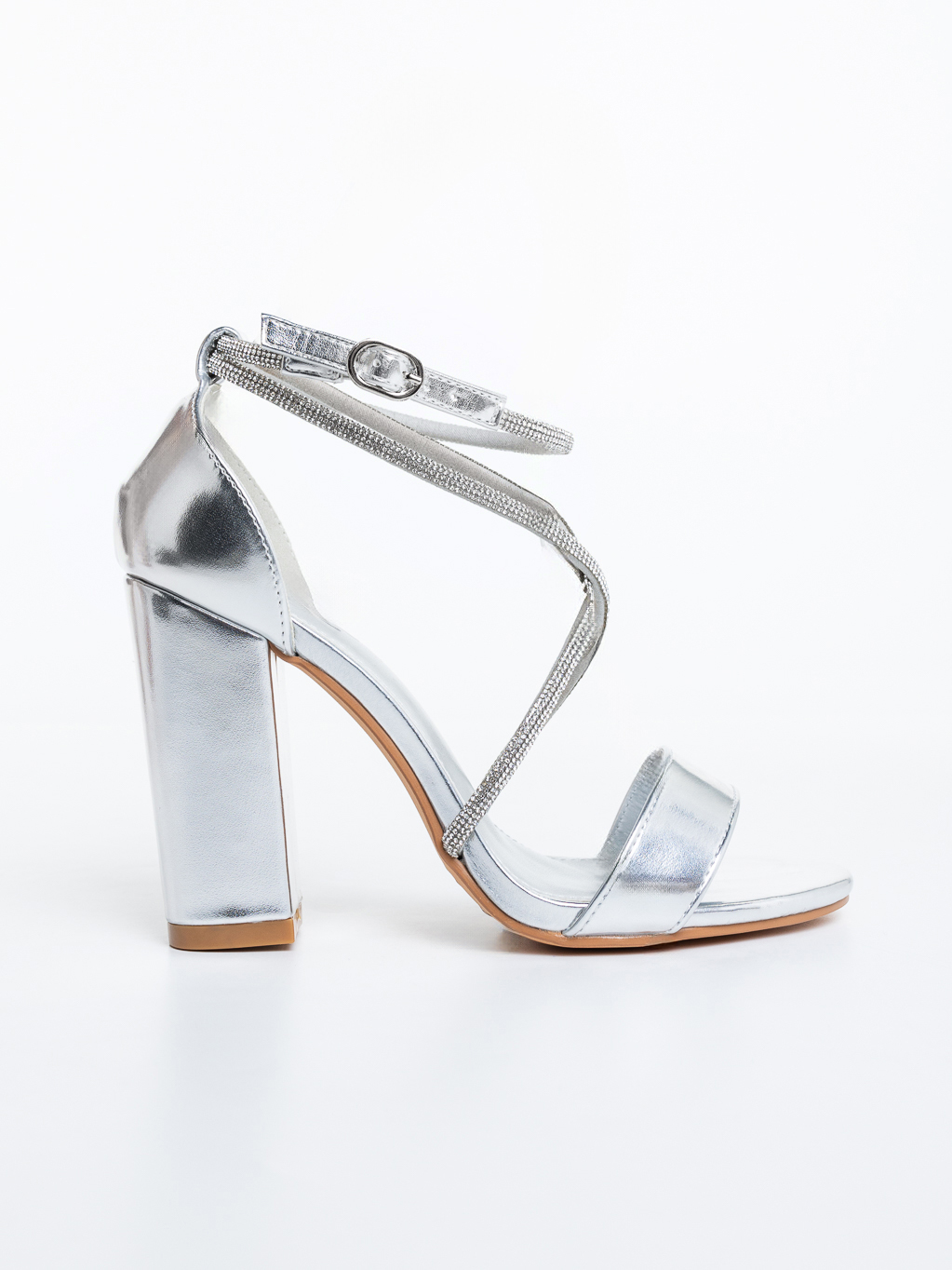 Sandale dama cu toc argintii din piele ecologica lacuita Alvara - Detalii produs
