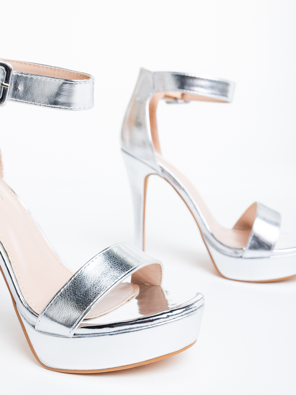 Sandale dama cu toc argintii din piele ecologica lacuita Olieva - Alege ce ti se potriveste si remarca-te
