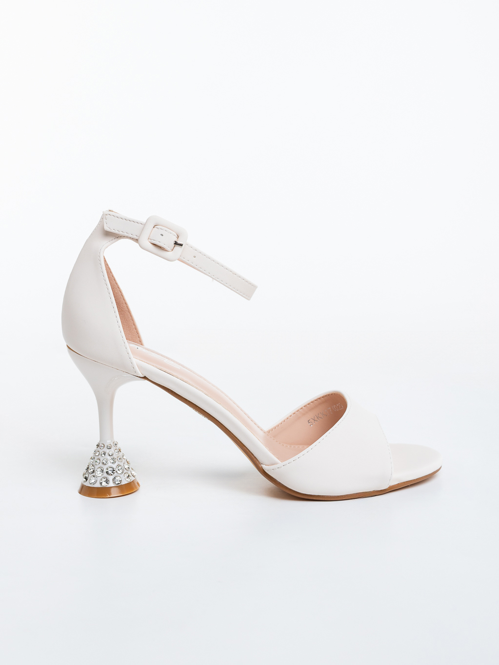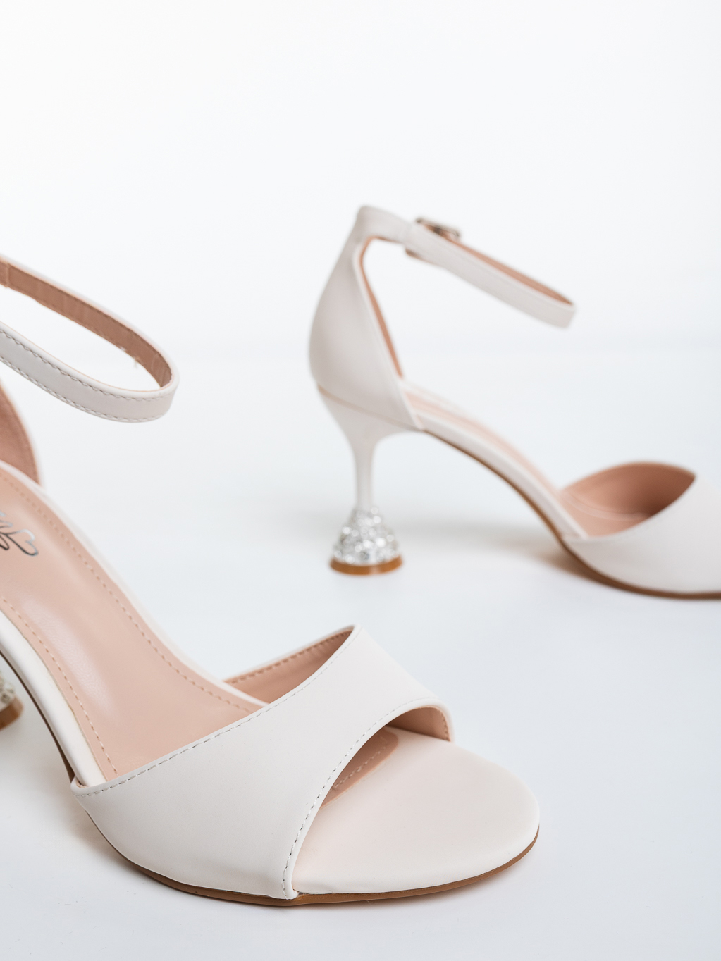 Sandale dama cu toc bej din material textil Casara - Detalii produs